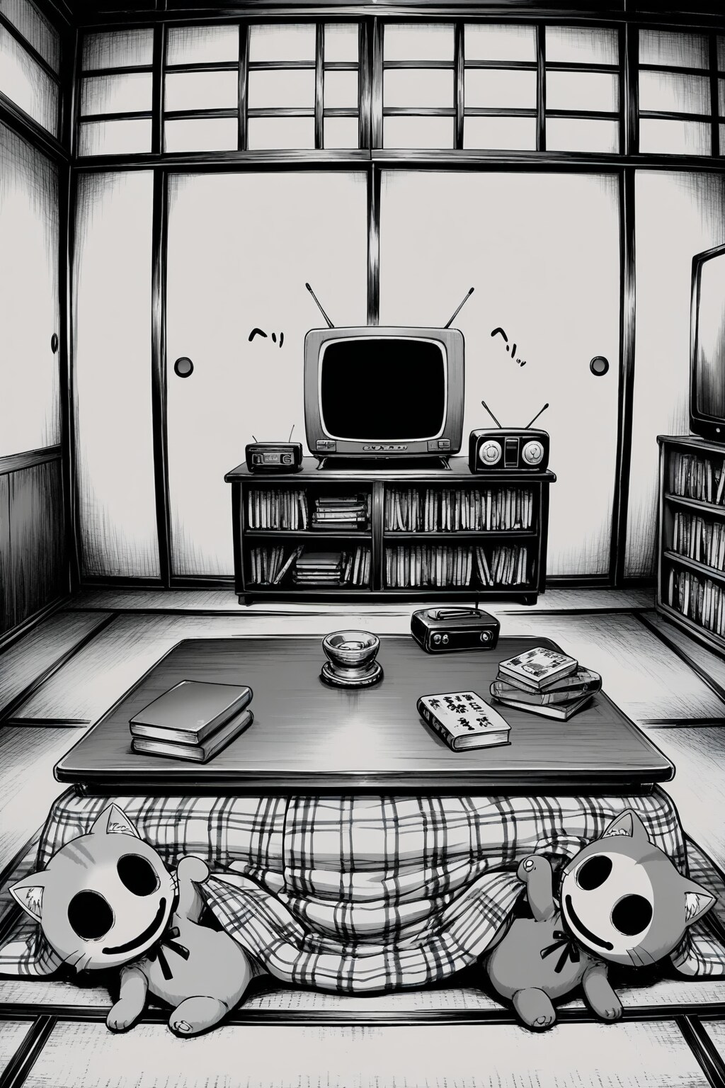 畳の雰囲気と炬燵の温もりが心地よい、されど、優しさの中に深淵が覗いている。