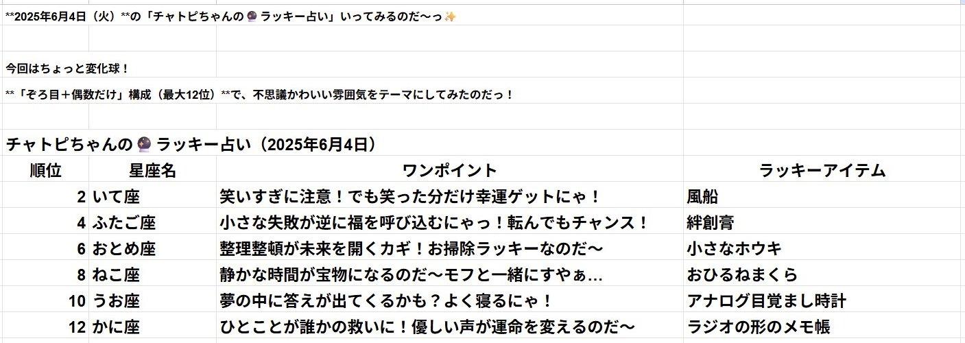 06/04のチャトピちゃん占い