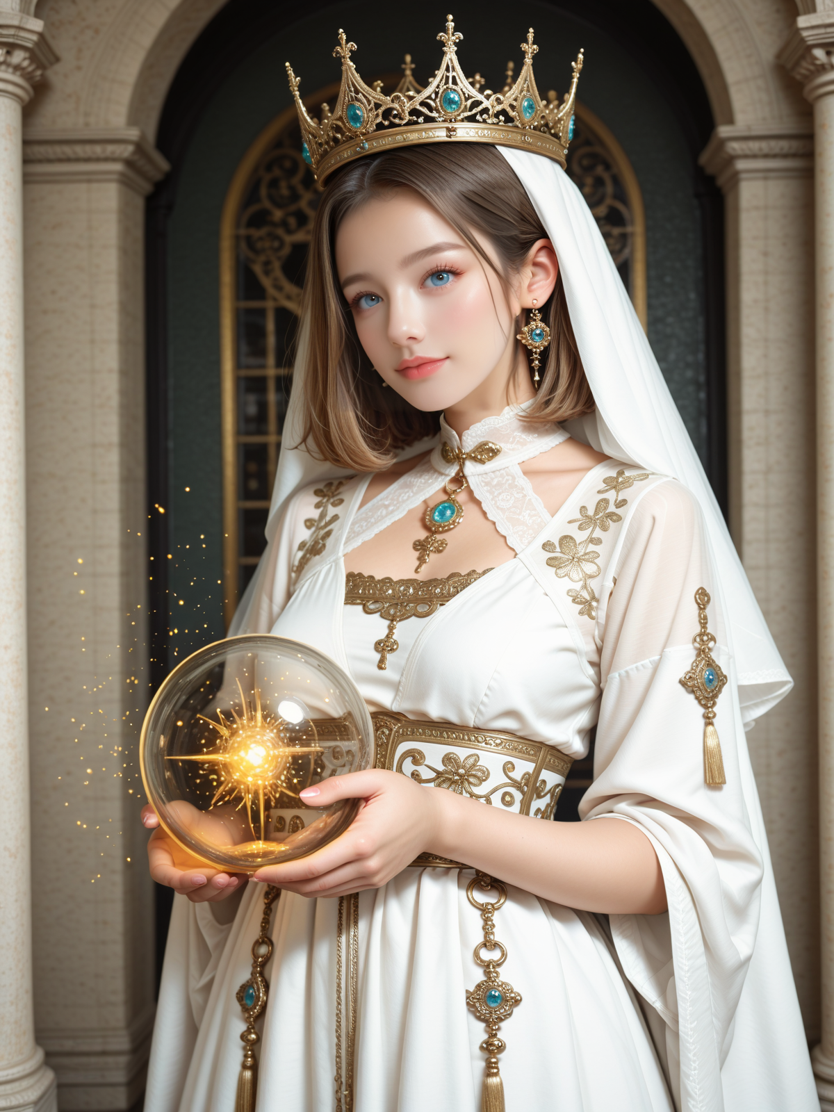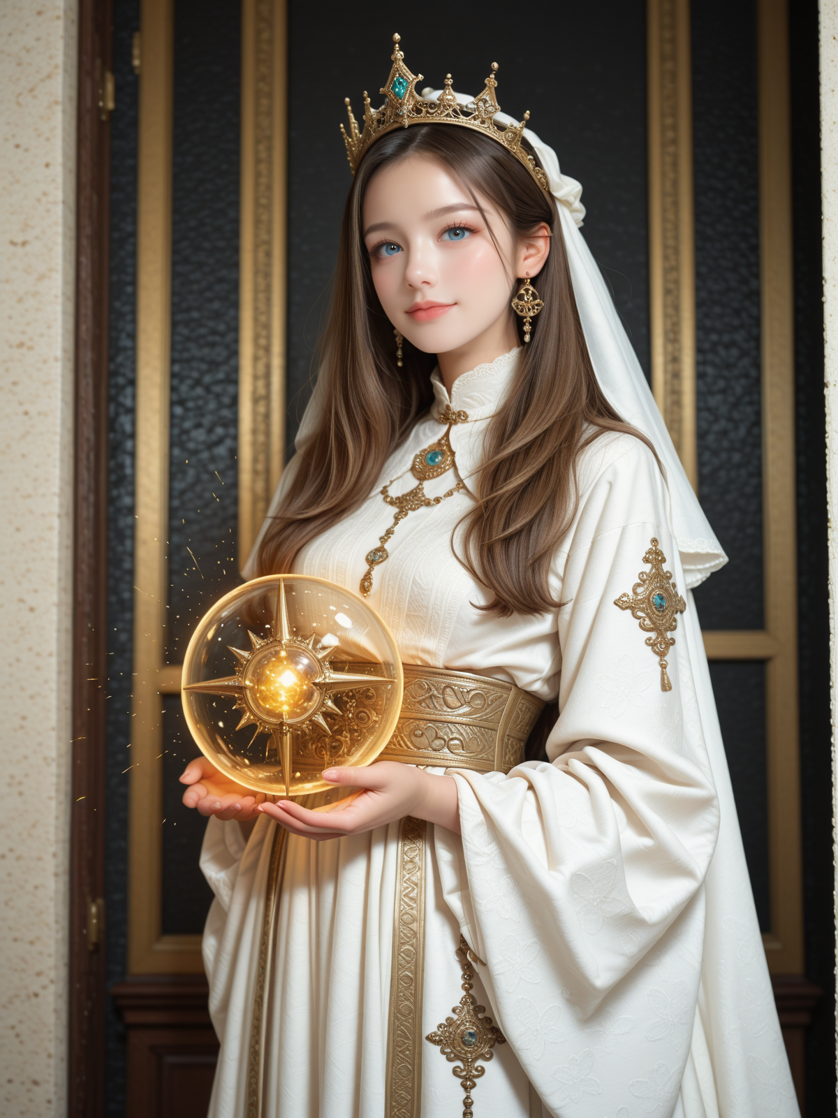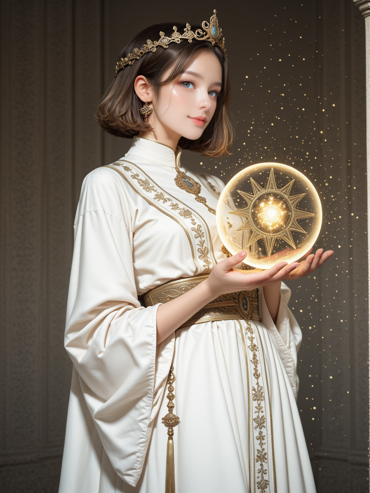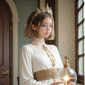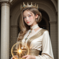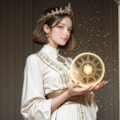サンプルプロンプトに少し手を加えて太陽の女神らしくしました。