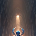 (cinematic shot:1.5), (cute high priestess girl:1.5), heterochromia, school uniform, [hair bow,:0.125] after rain,
