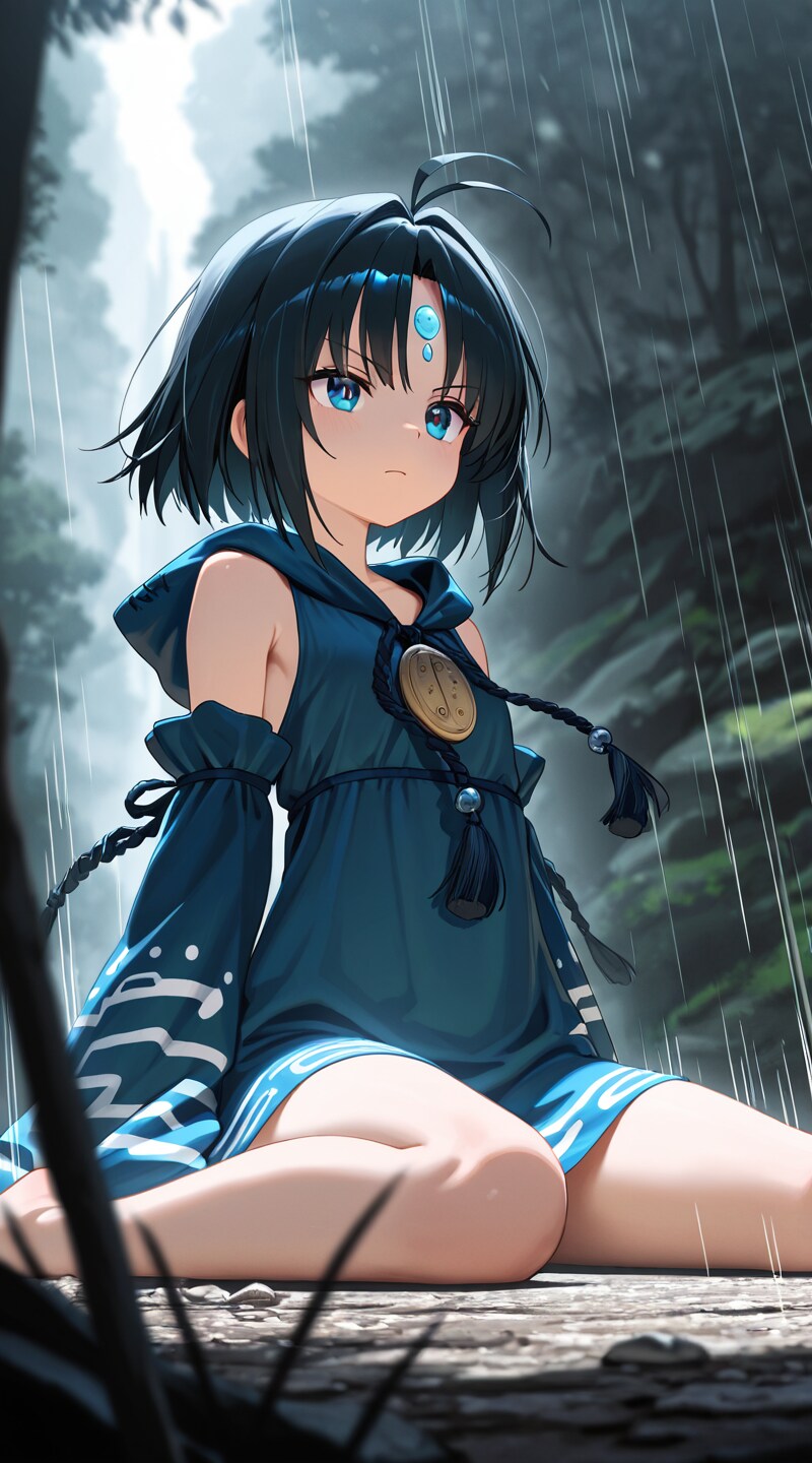(cinematic shot:1.5), (cute shaman girl:1.2), (serious:1.4), (wariza:1.4), (speed lines:1.1),