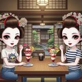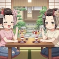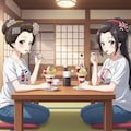 アニメ風の絵ではうまく日本髪にならず※9・10枚目、9枚目はうまく言っているように見えますが右側の子の後ろ髪が余計