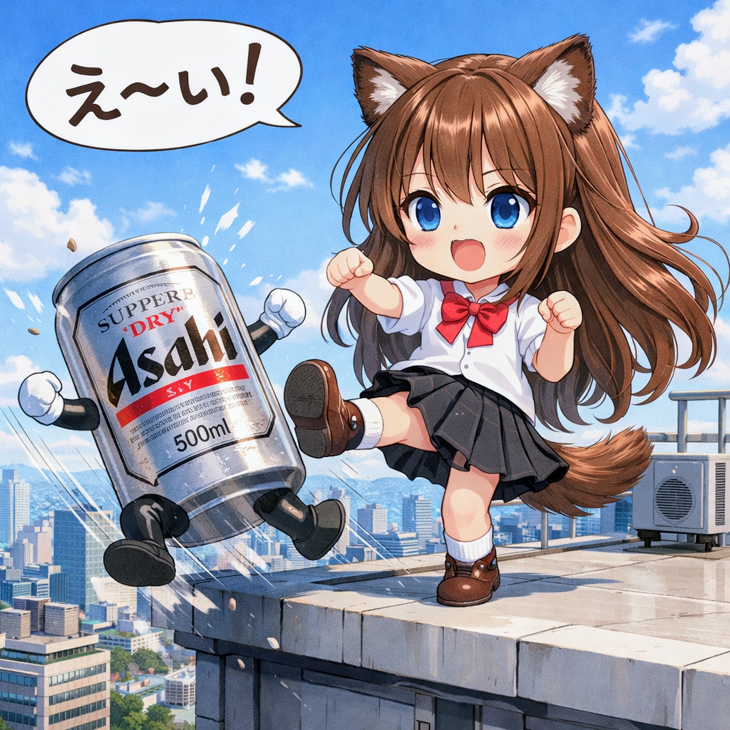 ビール缶を屋上から蹴落とす小さな女の子