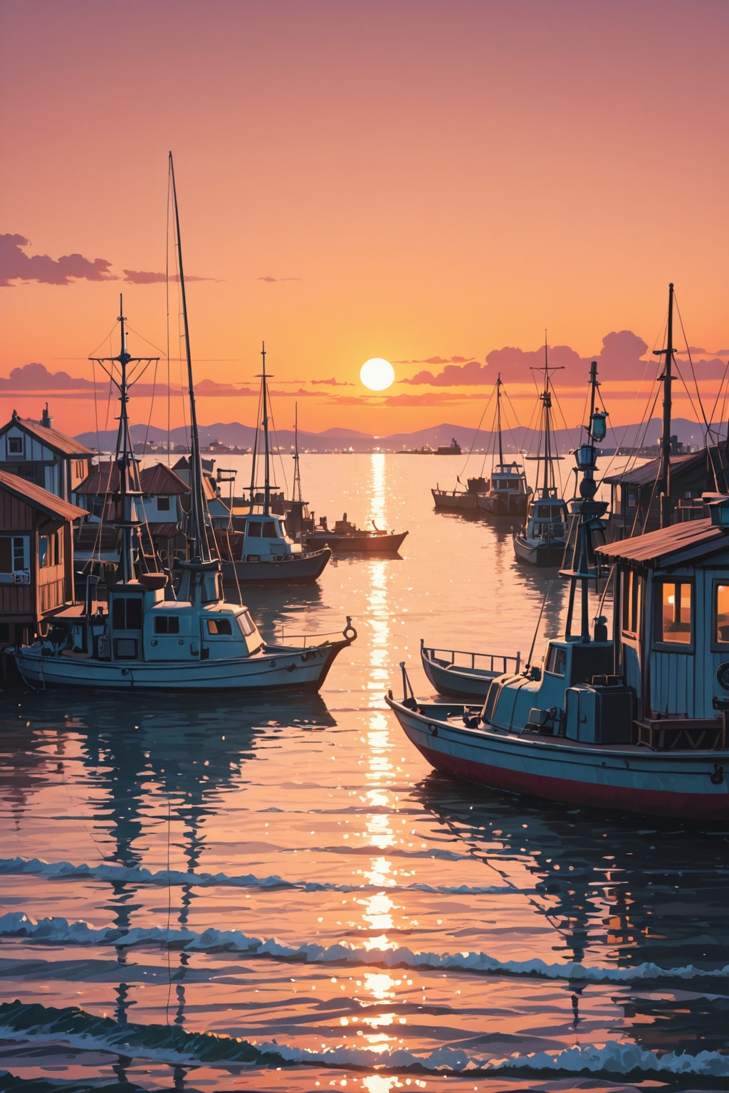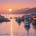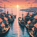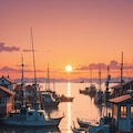 夕暮れの港町