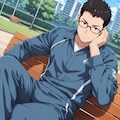 jacket partially removed, heart in eye, burnt clothes, holding fishing rod, kanji, doujin cover, pentagram, tape gag, adjusting headwear, red socks, friends, cloud print, coke-bottle glasses, oral invitation, competition school swimsuit, barbell piercing, gradient legwear, prisoner, blood on breasts, wind chime, carrying over shoulder, tape measure, flaming weapon