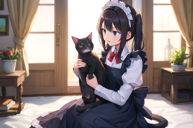 4枚目 1girl,cat,maid