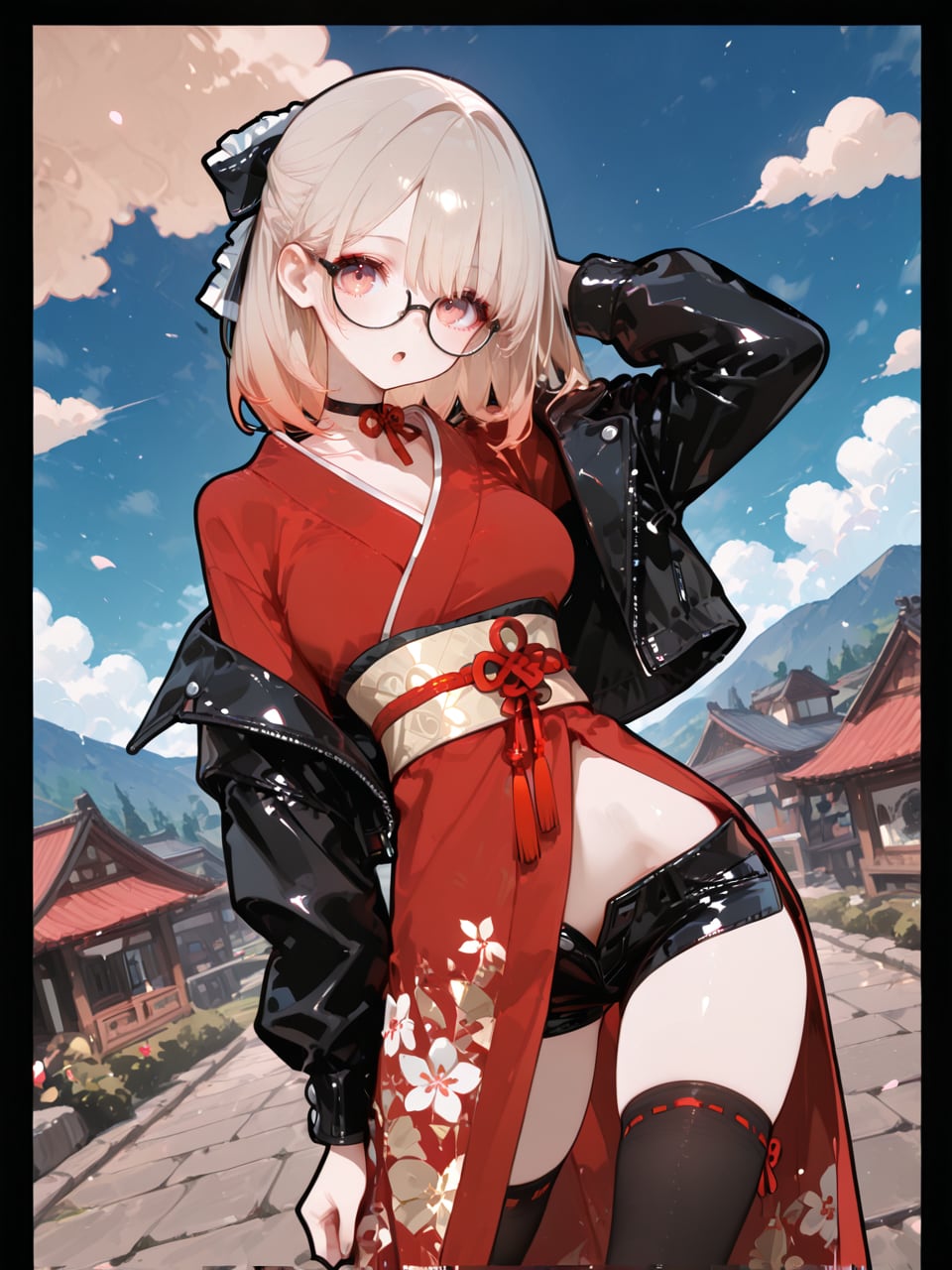 jacket partially removed, heart in eye, burnt clothes, holding fishing rod, kanji, doujin cover, pentagram, tape gag, adjusting headwear, red socks, friends, cloud print, coke-bottle glasses, oral invitation, competition school swimsuit, barbell piercing, gradient legwear, prisoner, blood on breasts, wind chime, carrying over shoulder, tape measure, flaming weapon