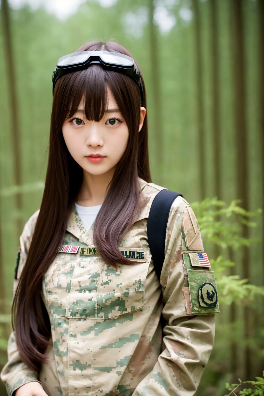 ミリタリー美女、迷彩服が上手く出ない。エアライフルを『持っている』で何とか1枚出たw