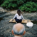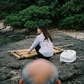 オネエサンハ 漁ニ行ッタリ てんとデ寝テイル
