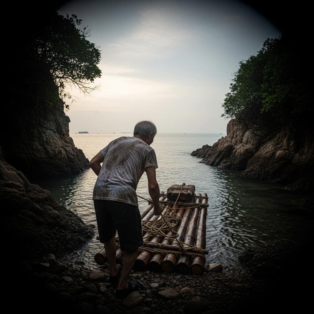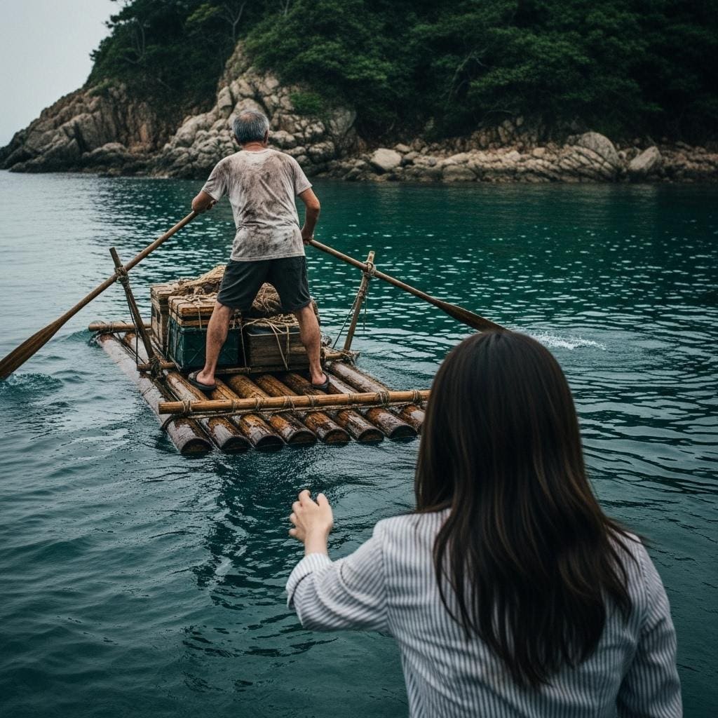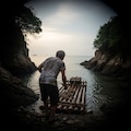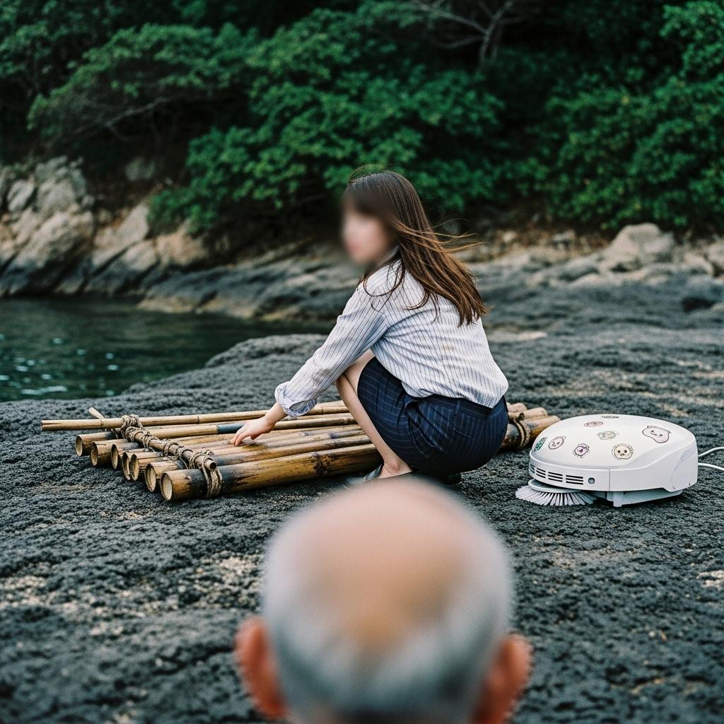 アル日、気ガ付イタラ オヂガ筏ニ荷物ヲ積ンデ