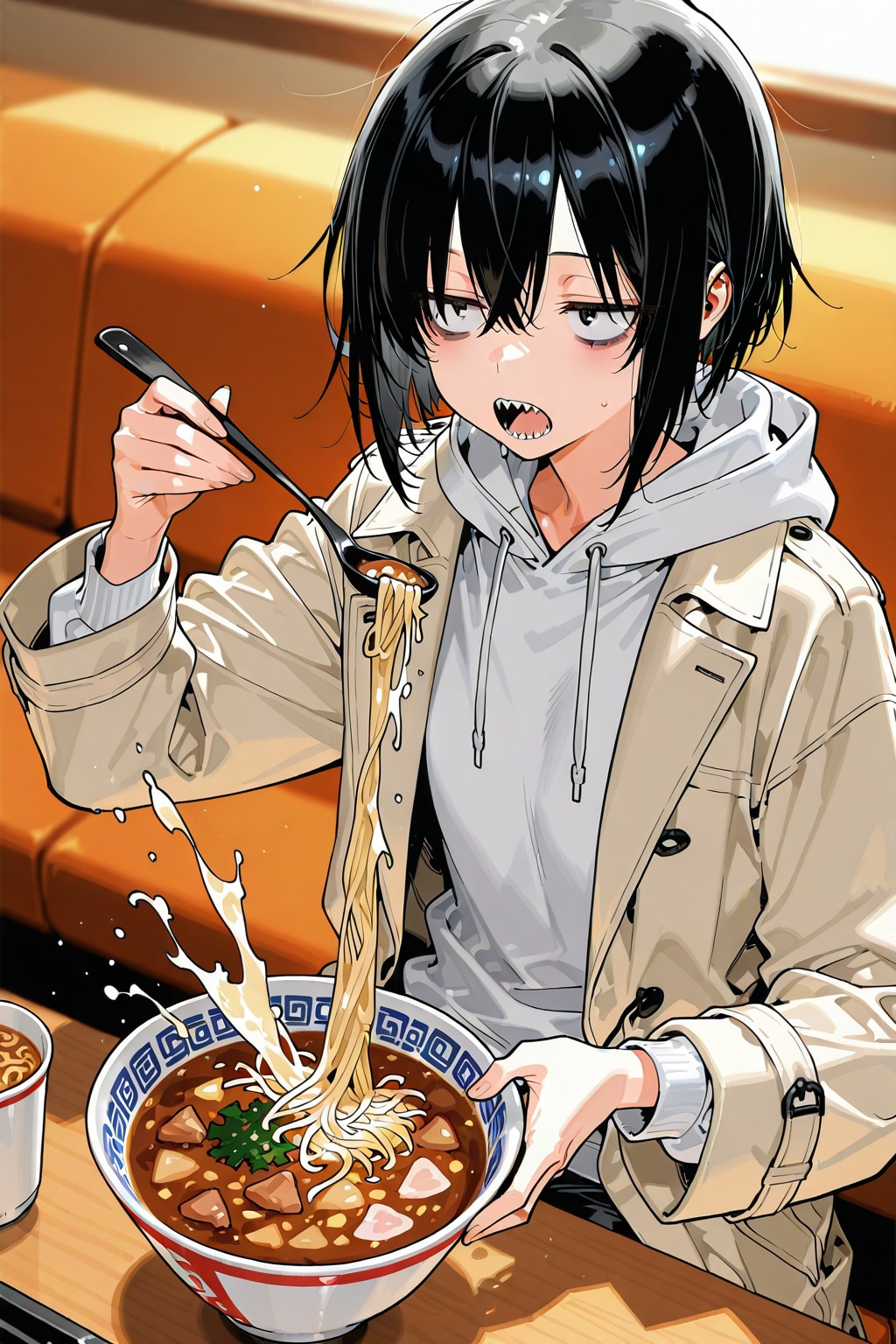 兄ちゃん…真っ白な服でカレーうどんは自殺行為だよぅ…