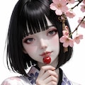 日本人形のような少女をイメージして生成しました。