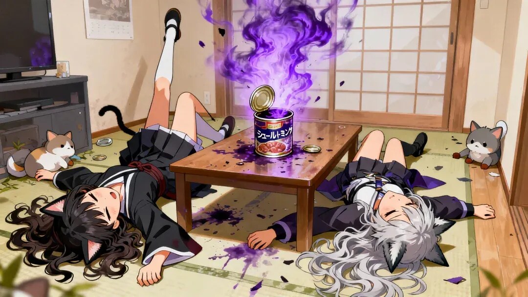 2枚目、家で缶詰を開けた結果あまりにも激臭で気絶するさくらちゃんとステラちゃん