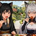 3枚目、一応おさかにゃの缶詰だから食べれるよね?と試食するさくらちゃんとステラちゃん