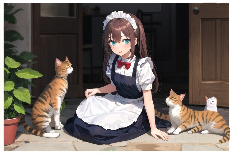 4枚目 1girl,cat,maid