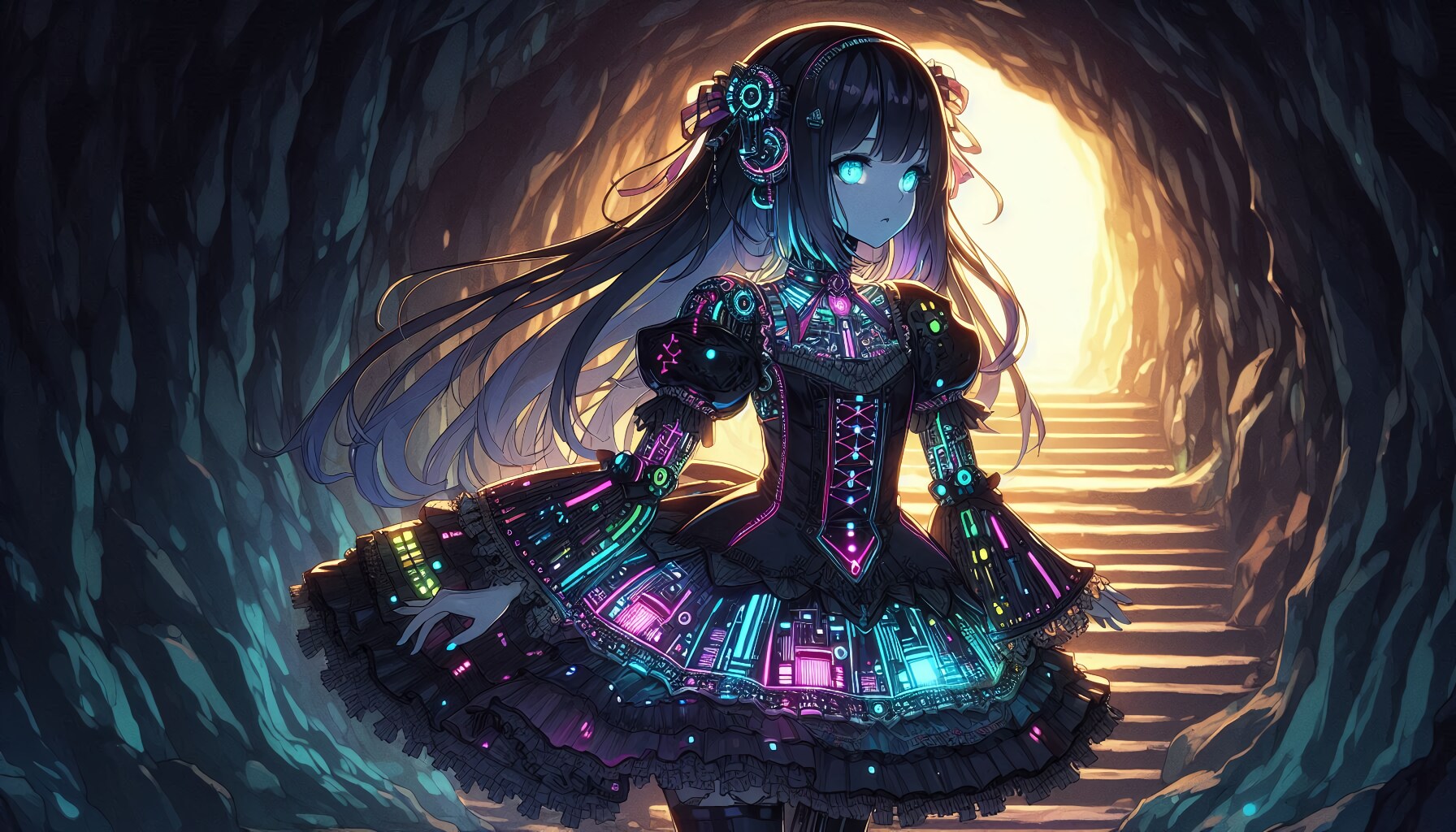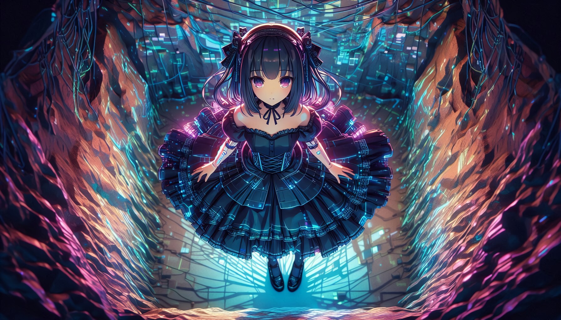 ゴシックロリータにSFっぽいデザインを加えてみようと試行した結果、いつの間にかゲーミングゴスロリ娘になってしまいました