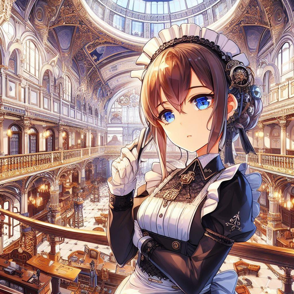 幾つかあるメイドさん達の衣装から、「スチームパンク風」というテーマで生成した画像です。