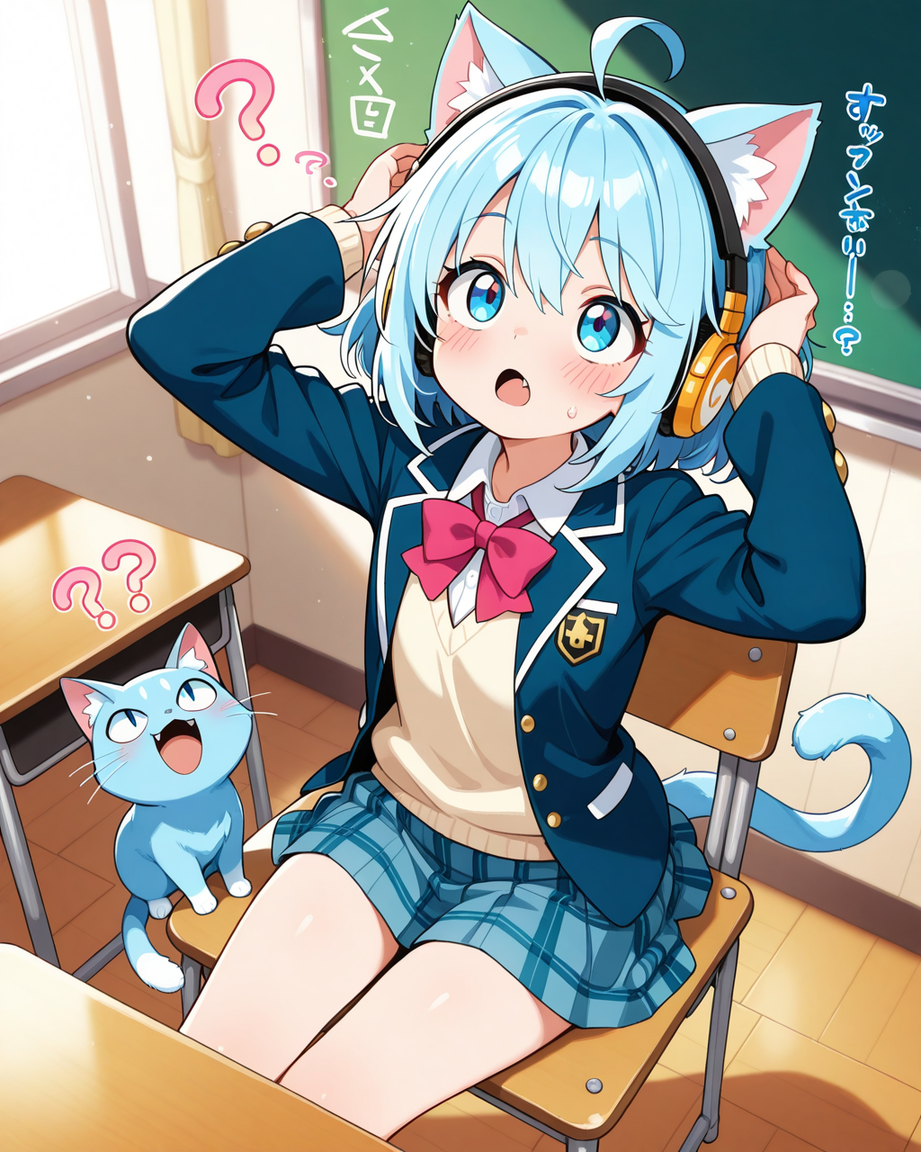 「今日はイヤホンの日」だったのでイヤホンを着けさせたかったのですが、イヤホンだと髪の毛に隠れて何も見えなくなってしまうので、ヘッドフォンにしました・・・。