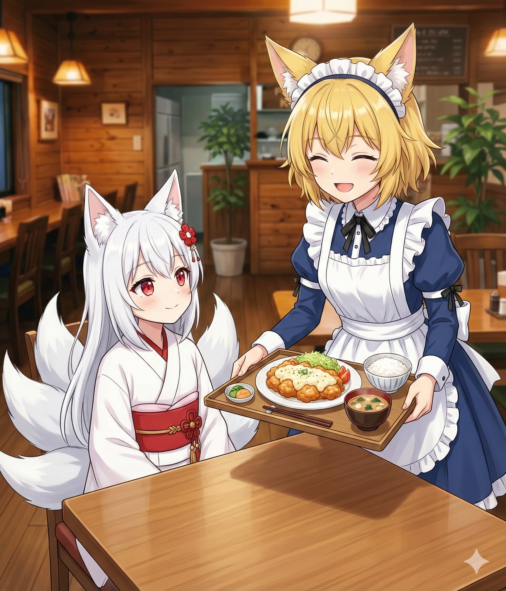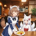 おツネ⋯やれやれ系キツネ娘。KUONカフェの省エネしごできメイド。
