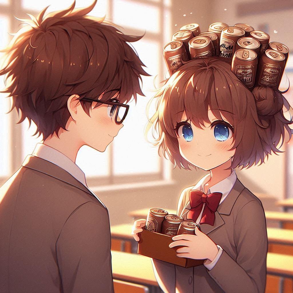 ビール缶型のチョコレートを渡す小さな女の子