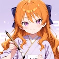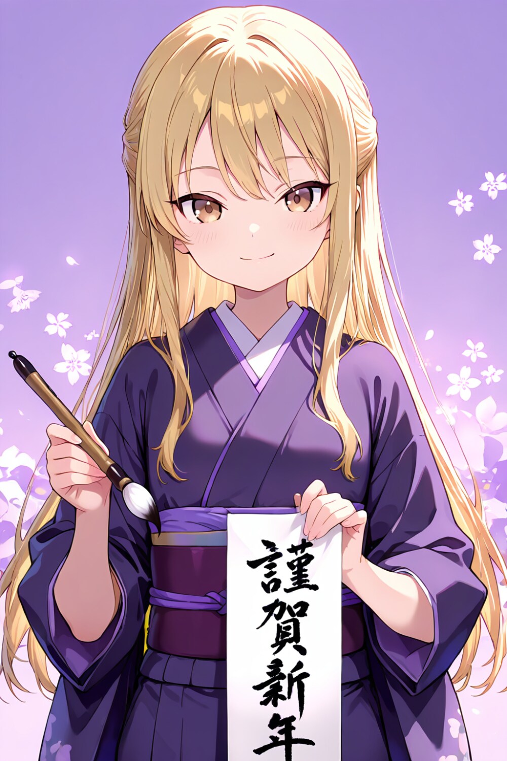 □ background, calligraphy, holding brush, □ clothes, □ tone, □ theme, 1girl