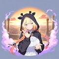 朝焼けの街並みとキリン着ぐるみお姉さん(╹﹃╹๑)