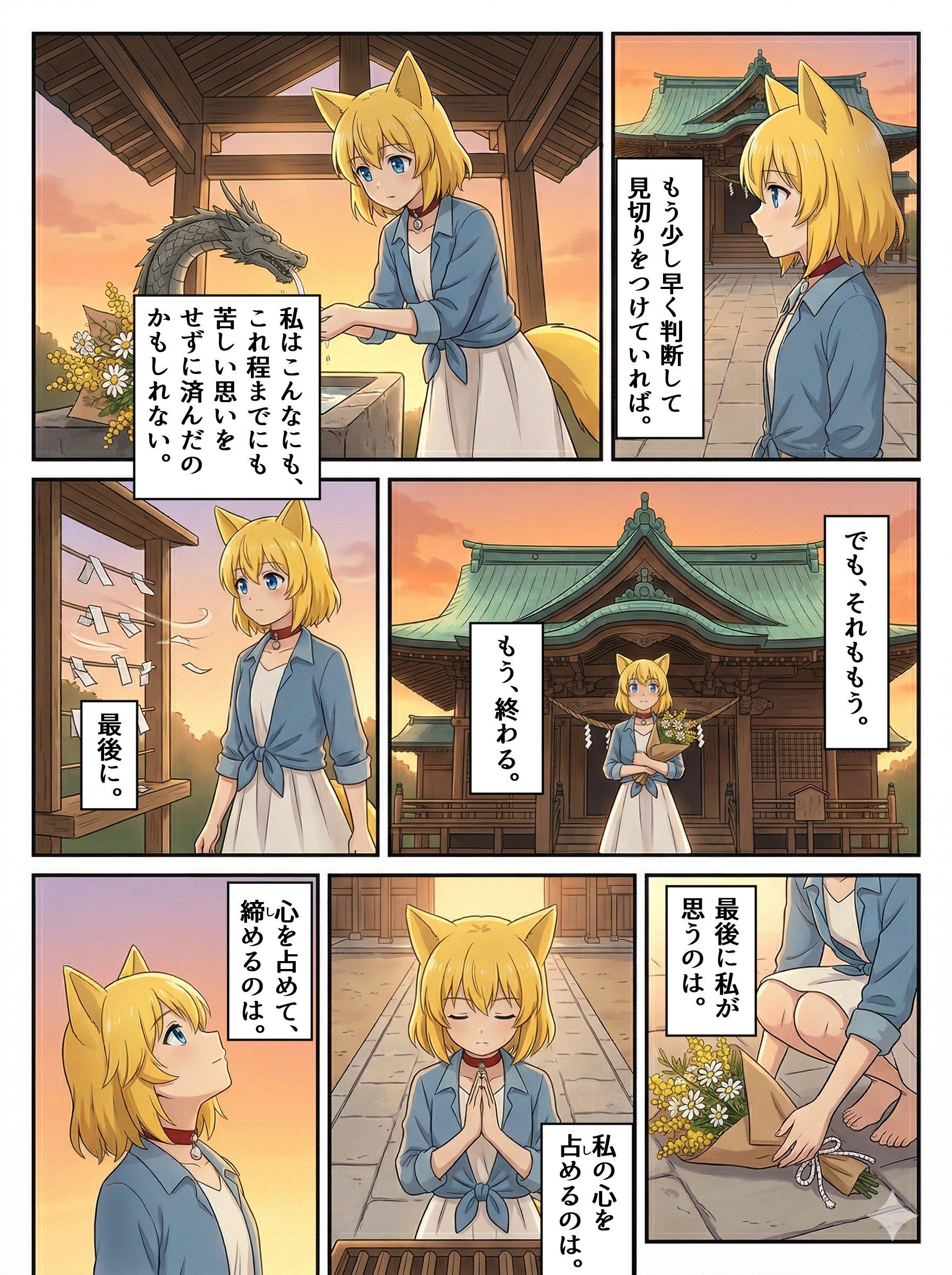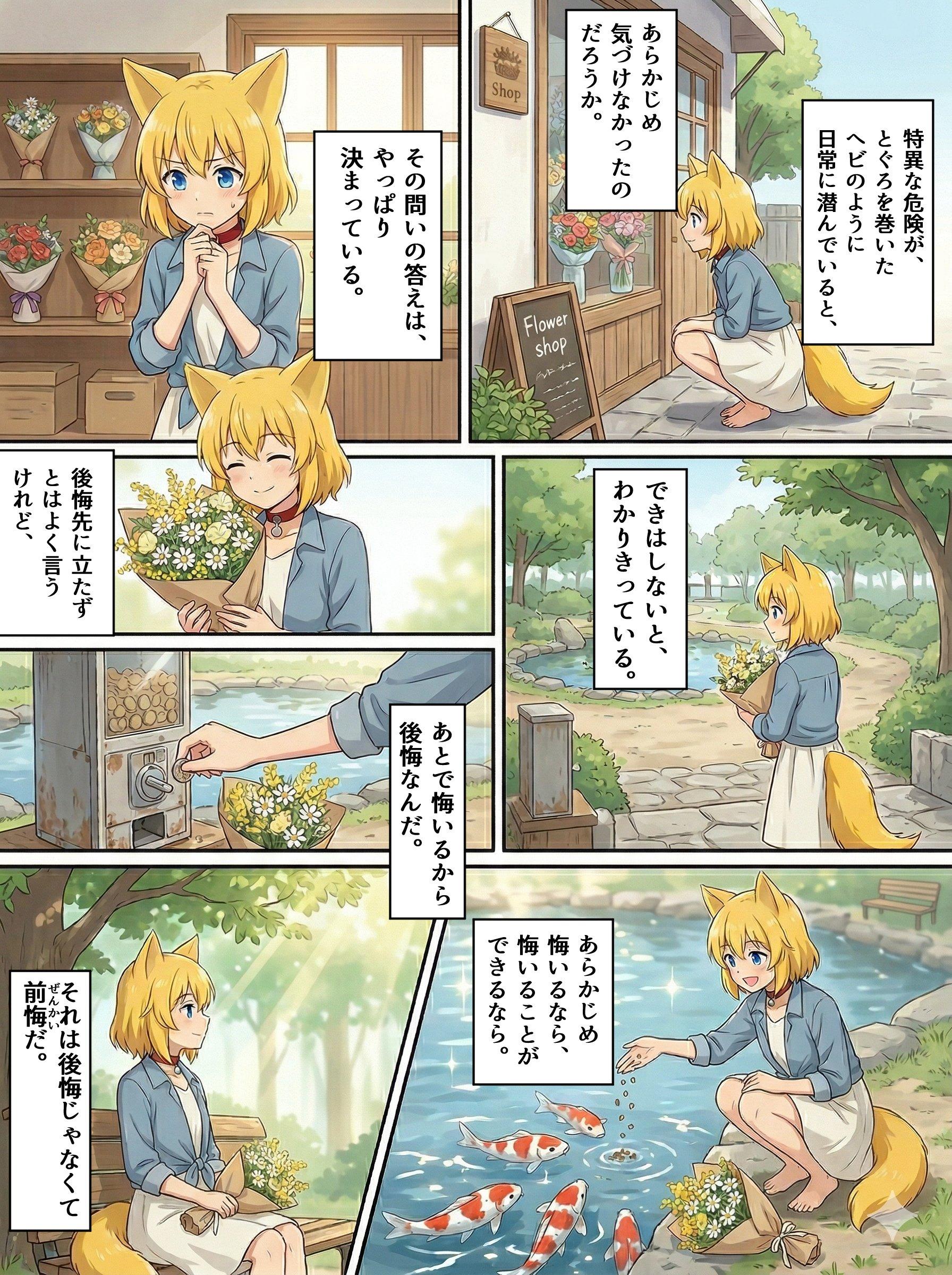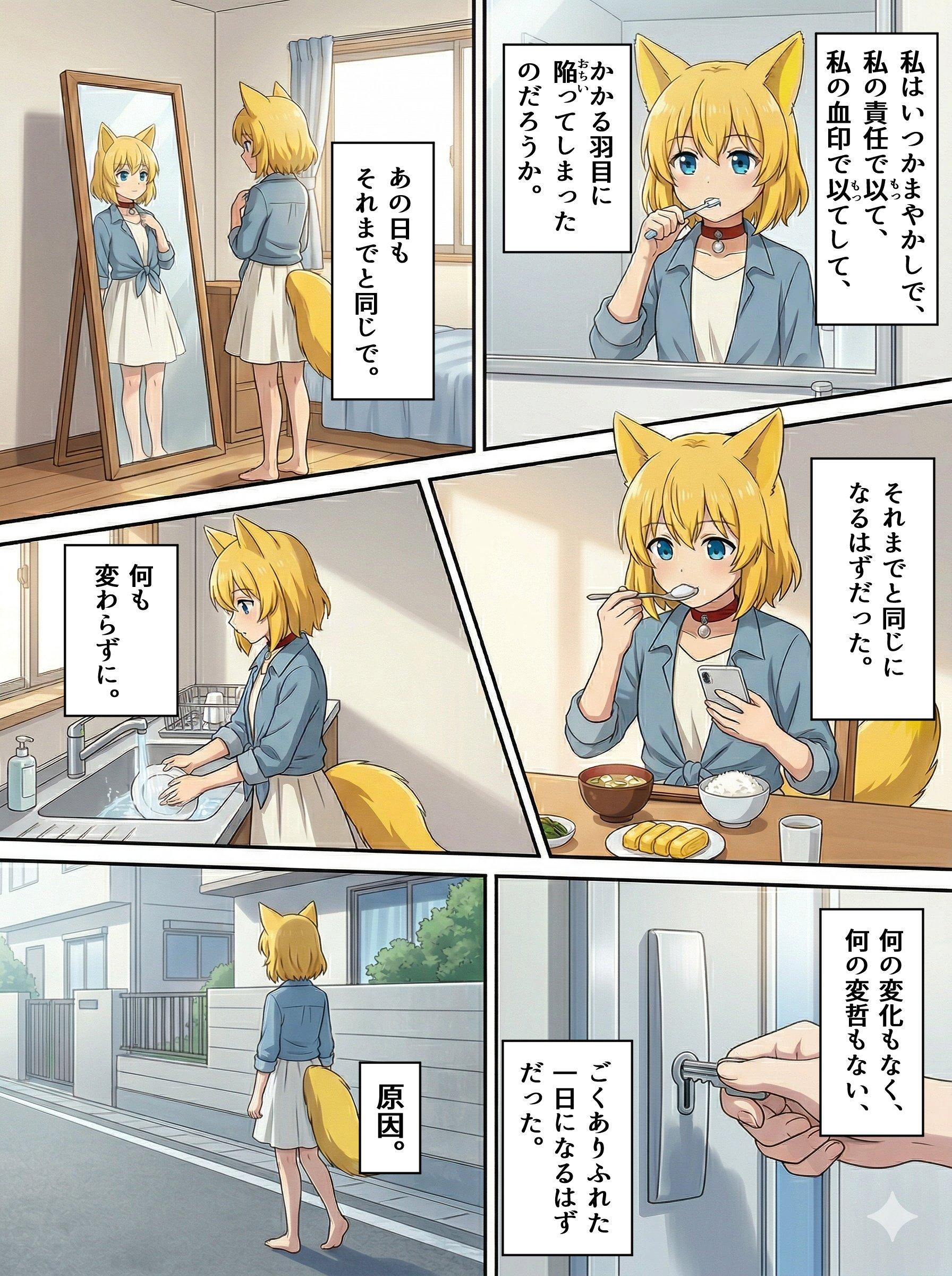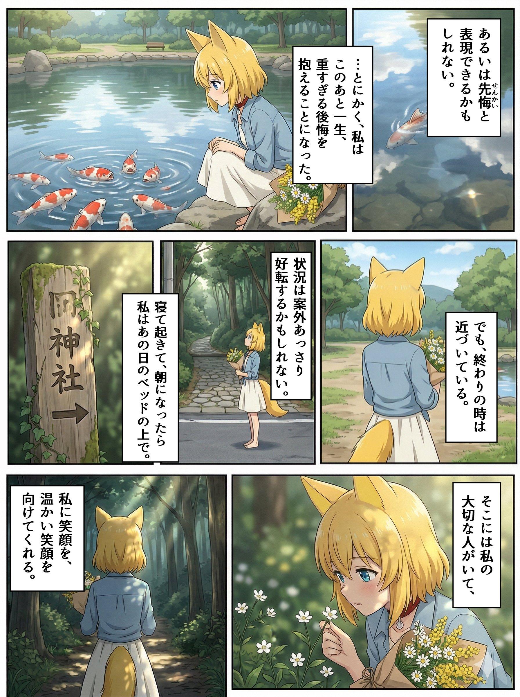 終わりと始まり 2026/04/01 使用したAI Gemini #女の子 #オリジナル #ケモミミ #狐耳 #狐娘 #漫画 #シリアス 呪文 入力なし バークシー 258 投稿 フォロー 14 フォロワー 35 キツネの女の子がとても好きです。毎日投稿を目標。自作した狐娘のマイアバターAIイラストオンリーで投稿していきます。心の準備ができたらえっちなイラストも投稿するかも。 バークシーさんの他の作品 バークシーさんの他の作品 自らに身の丈以上の暗示をかけようとするキツネ バークシー 終わりと始まり バークシー 風変わりな目覚まし時計に翻弄されるキツネ バークシー 花の美しさに惑わされるキツネ バークシー 春の訪れに浮かれるキツネ バークシー 自らに身の丈以上の暗示をかけようとするキツネ バークシー 終わりと始まり バークシー 風変わりな目覚まし時計に翻弄されるキツネ バークシー 花の美しさに惑わされるキツネ バークシー 春の訪れに浮かれるキツネ バークシー 親子丼の見た目を良くしようと試みるキツネ バークシー