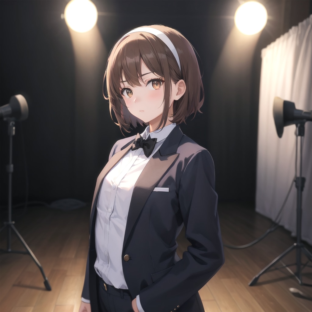 青髪ボブ子ちゃんの従妹がタキシードを着て撮影します。
