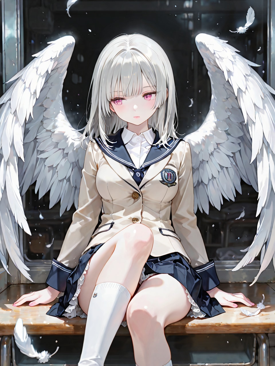 jacket partially removed, heart in eye, burnt clothes, holding fishing rod, kanji, doujin cover, pentagram, tape gag, adjusting headwear, red socks, friends, cloud print, coke-bottle glasses, oral invitation, competition school swimsuit, barbell piercing, gradient legwear, prisoner, blood on breasts, wind chime, carrying over shoulder, tape measure, flaming weapon