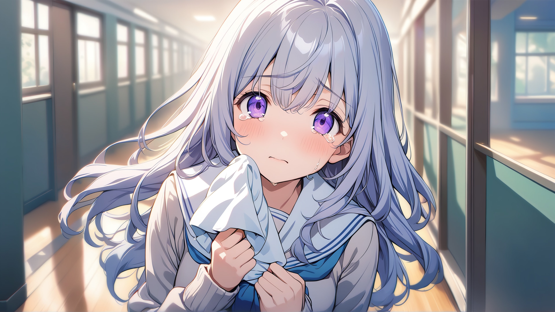 ライティングがやや後方から入ってくるのは大体ちちぷい生成機能と同じ。「廊下で」という指定は一貫して守られてますね。
