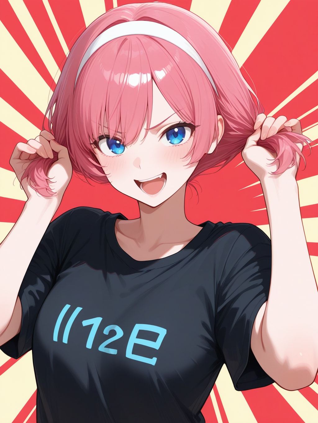 bunching hairで両側の毛を持ってくれるポーズしてくれます。
