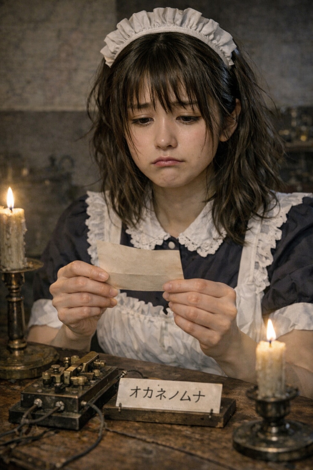 返信電報を受け取ったメイド23号(渚)