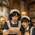 本国で電報を受け取り慌てるメイド1号とメイド13号(泉)