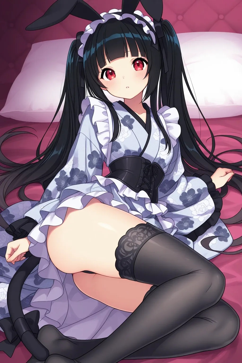 ロリータ振り袖コルセット帯003《黒と白・SeaArt全年齢イラスト》