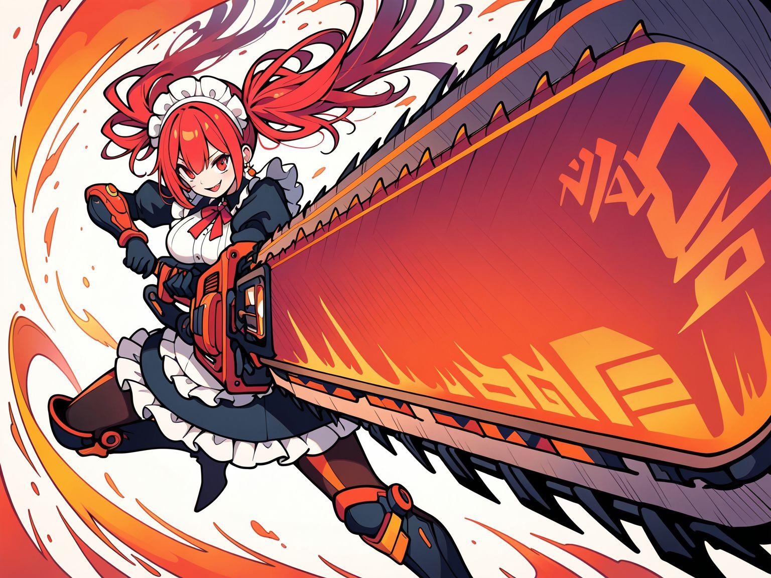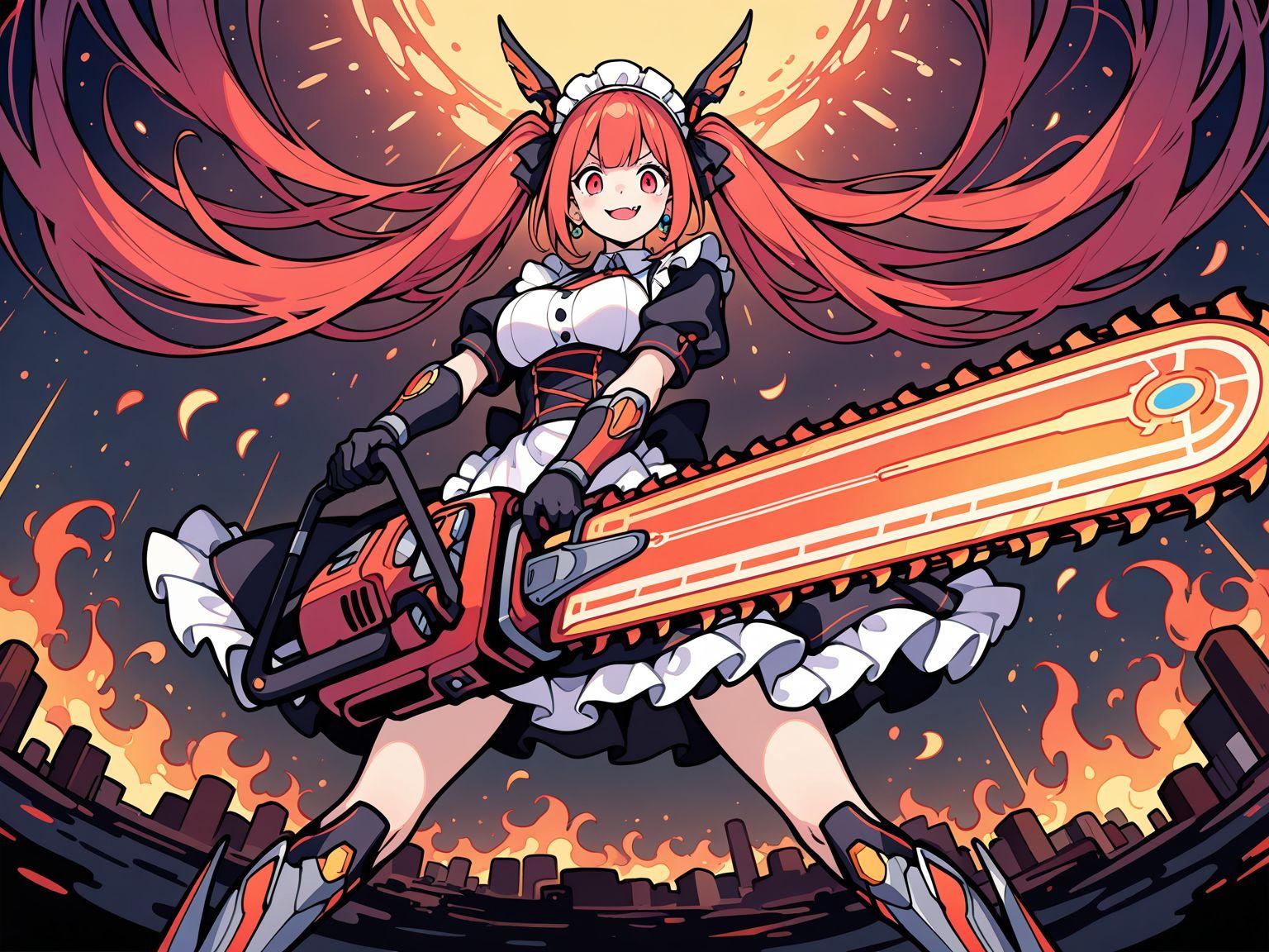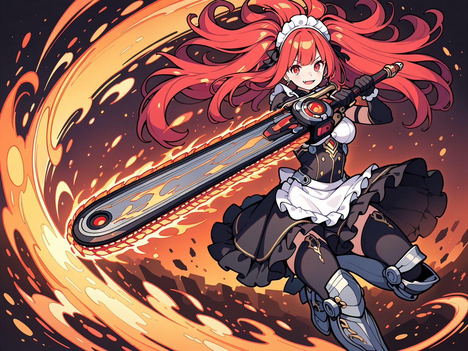 メイド服と火属性チェンソード