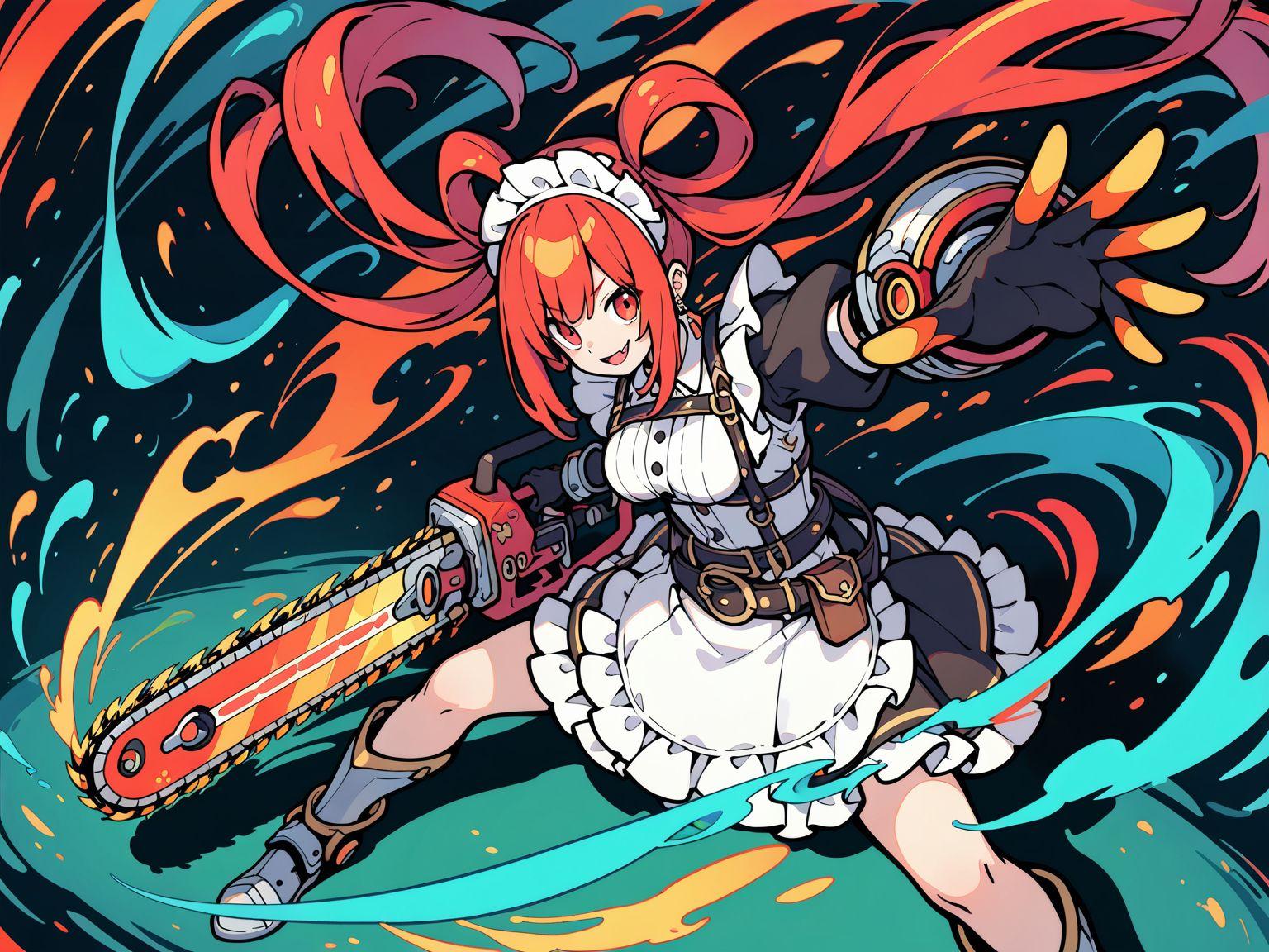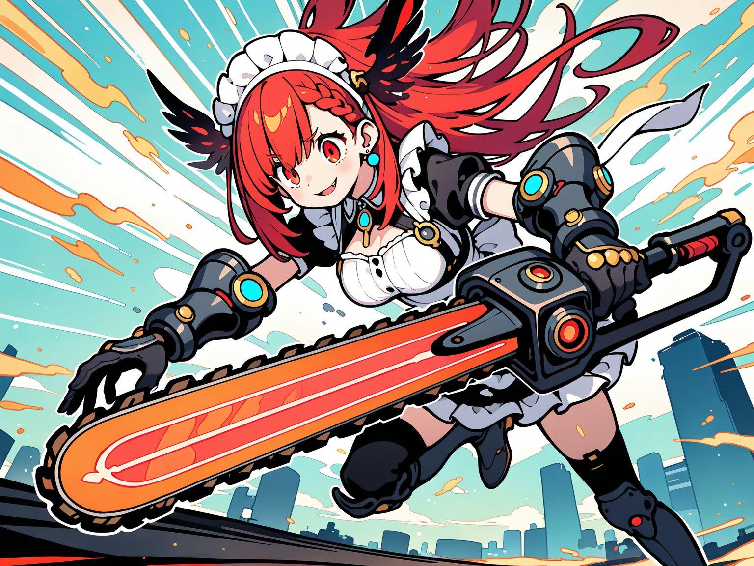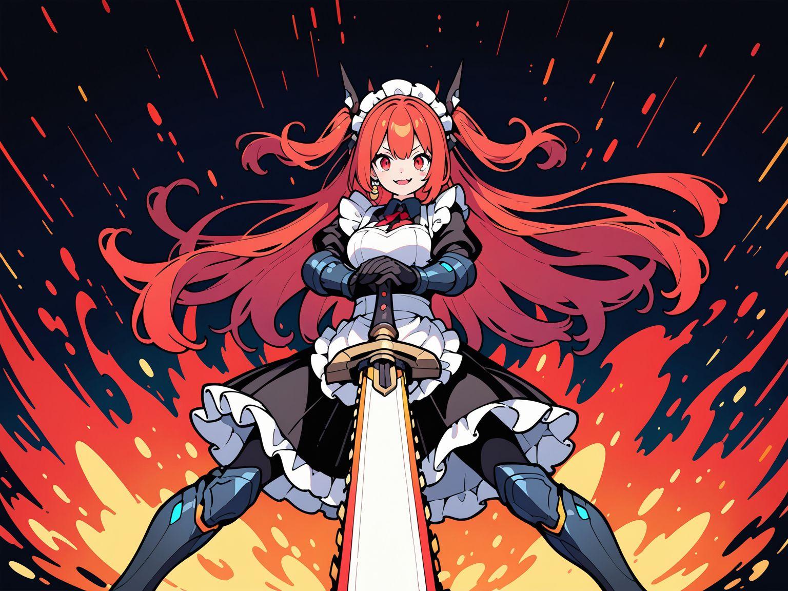 メイド服と火属性チェンソード