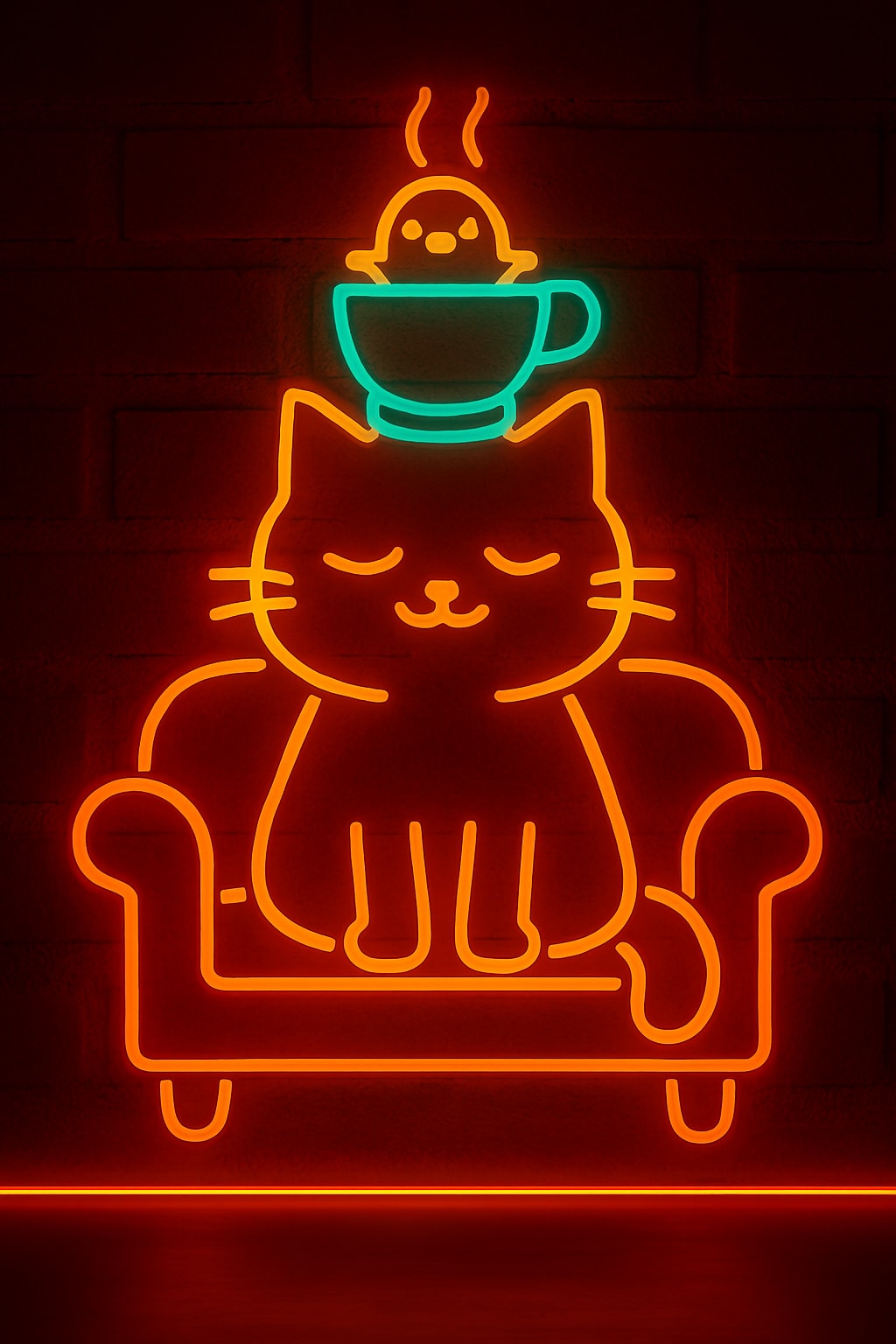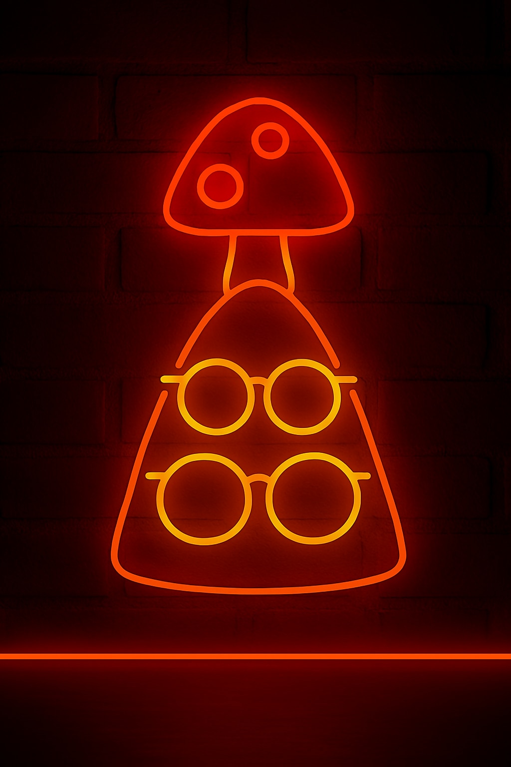 茶色いなだらかな三角に眼鏡が2つかかっている 三角の上にきのこが生えている これをネオンにー