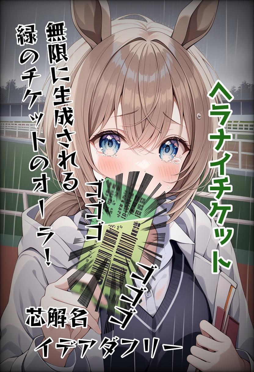 斜陽学園 浪漫部所属 ヘラナイチケットは、芯解イデアダフリーに苦悩していた。彼女が創作した物語にゴールなどなく、永遠だからだ。永遠ゆえに未完…曇天の空には雨、緑のチケットは悪魔的な存在感を見せつけ、微笑んでいた。