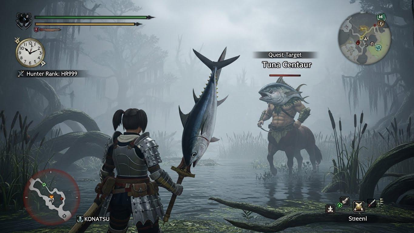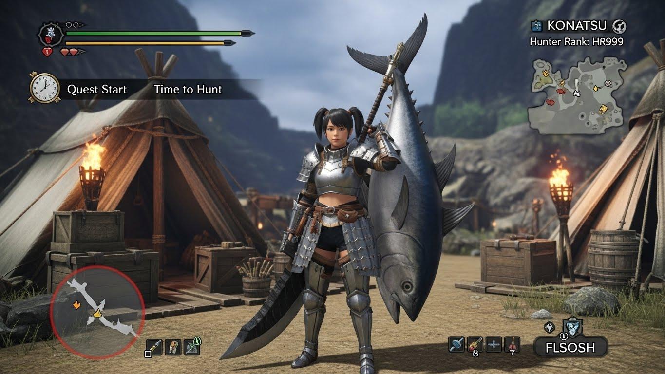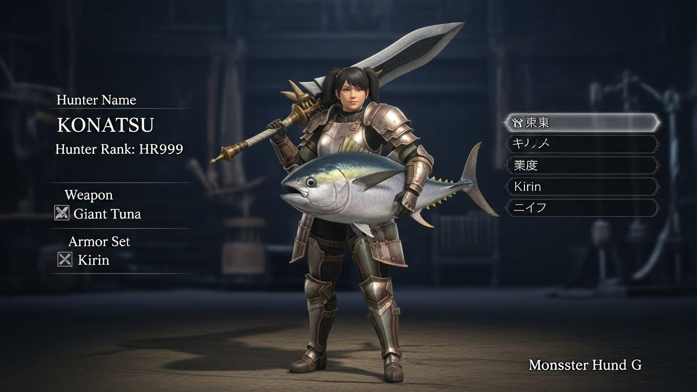 モンスターハンターのゲーム画面風イラストです。
