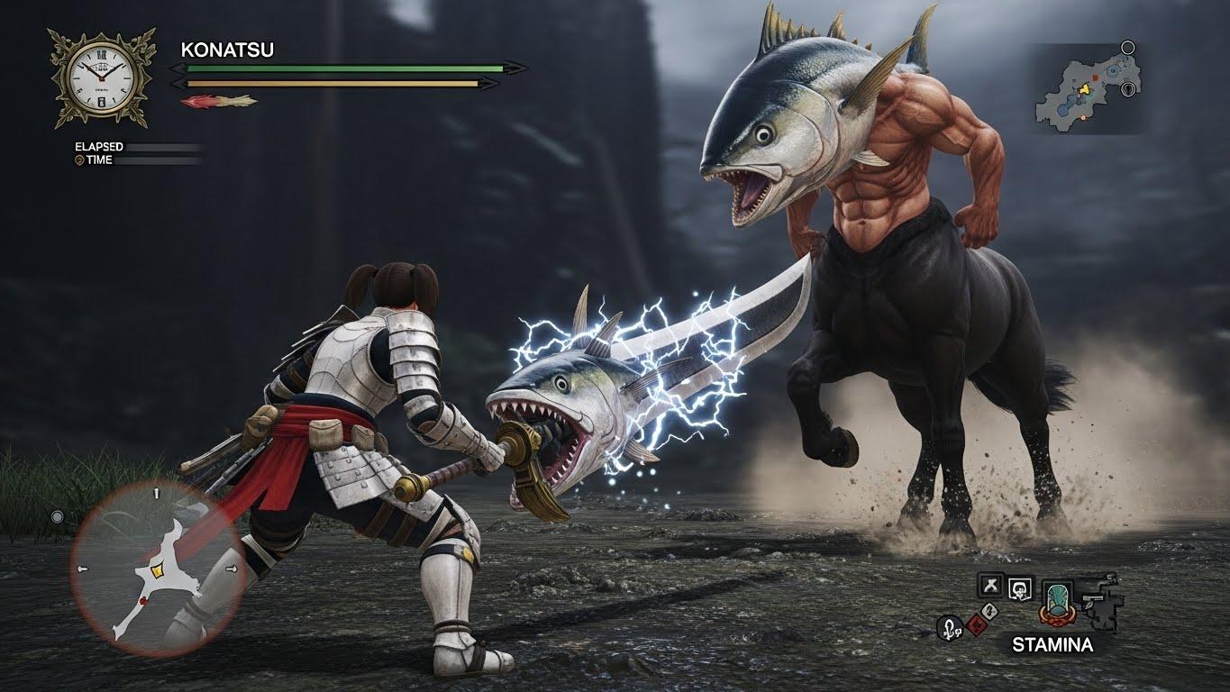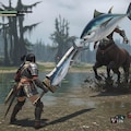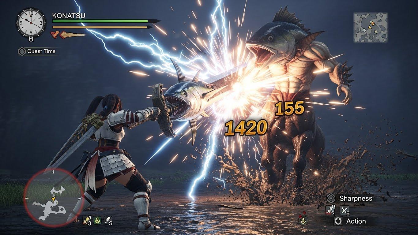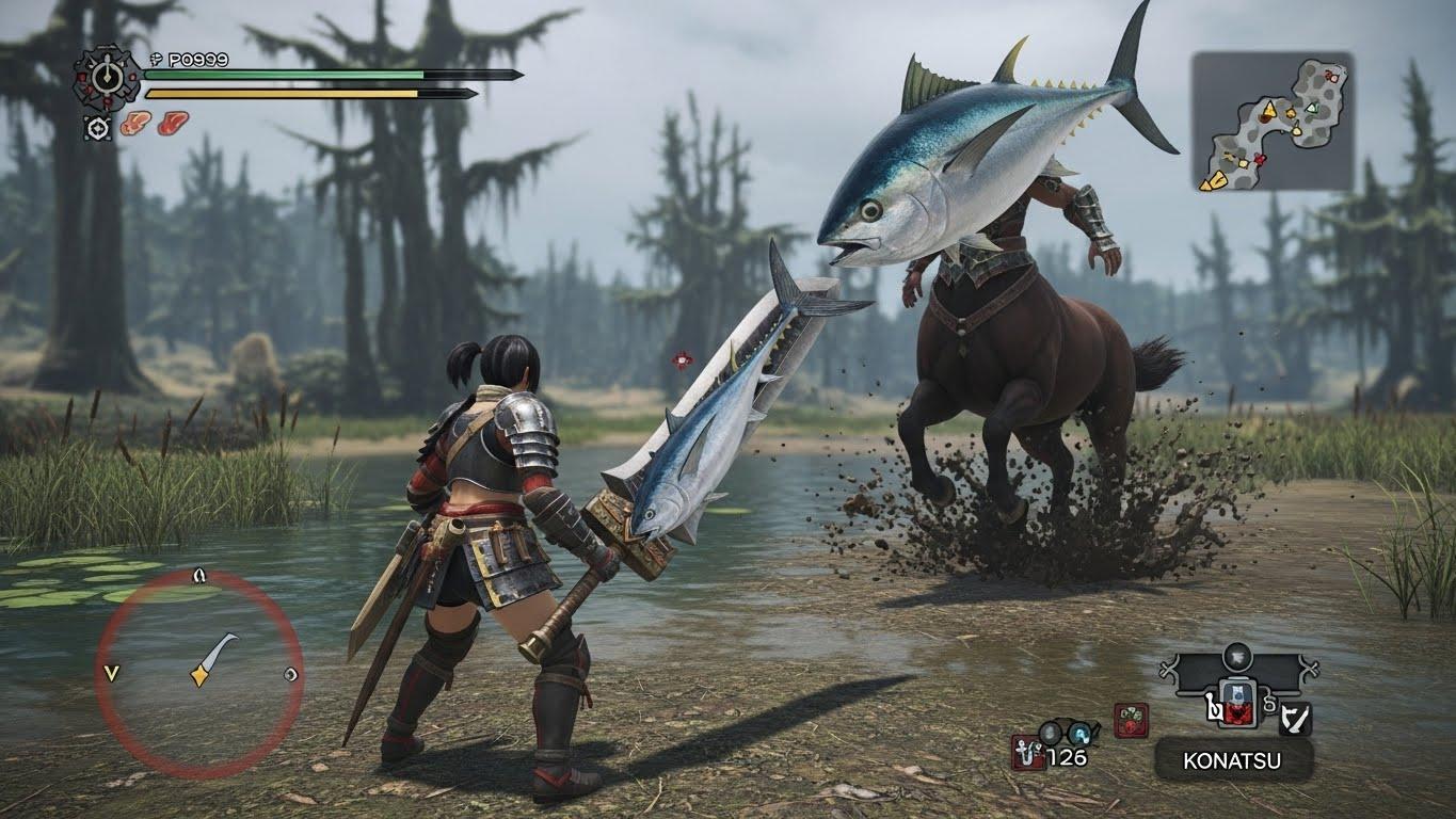 モンスターハンターのゲーム画面風イラストです。