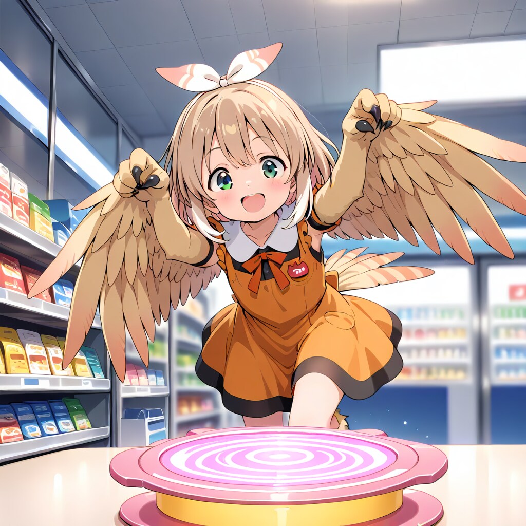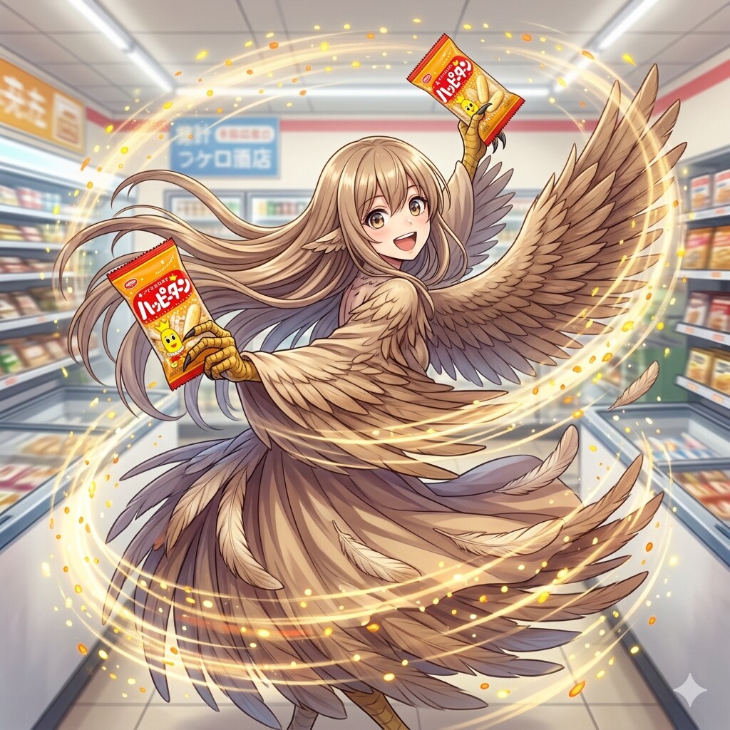 ハッピーパウダーによって頭が幸せになってターンしてるハーピーちゃん