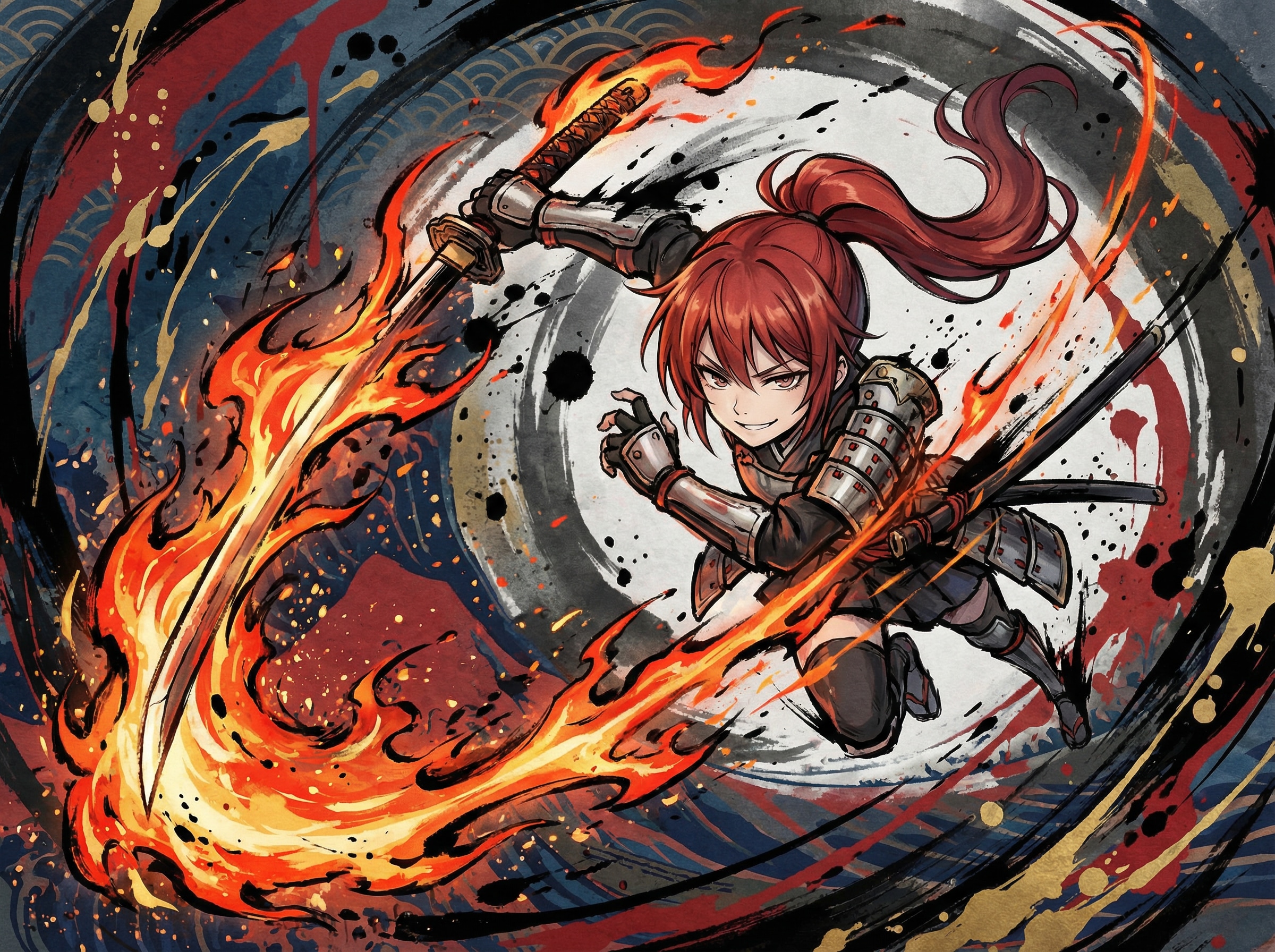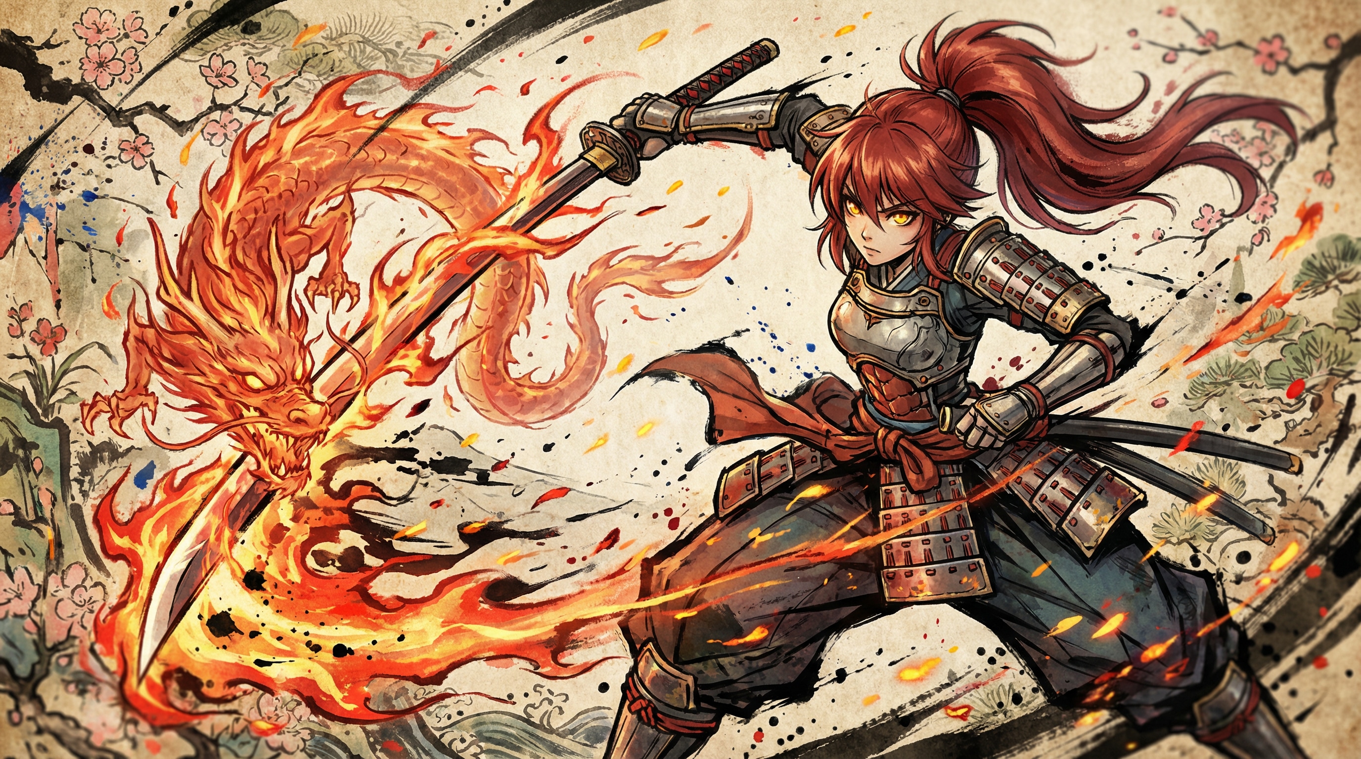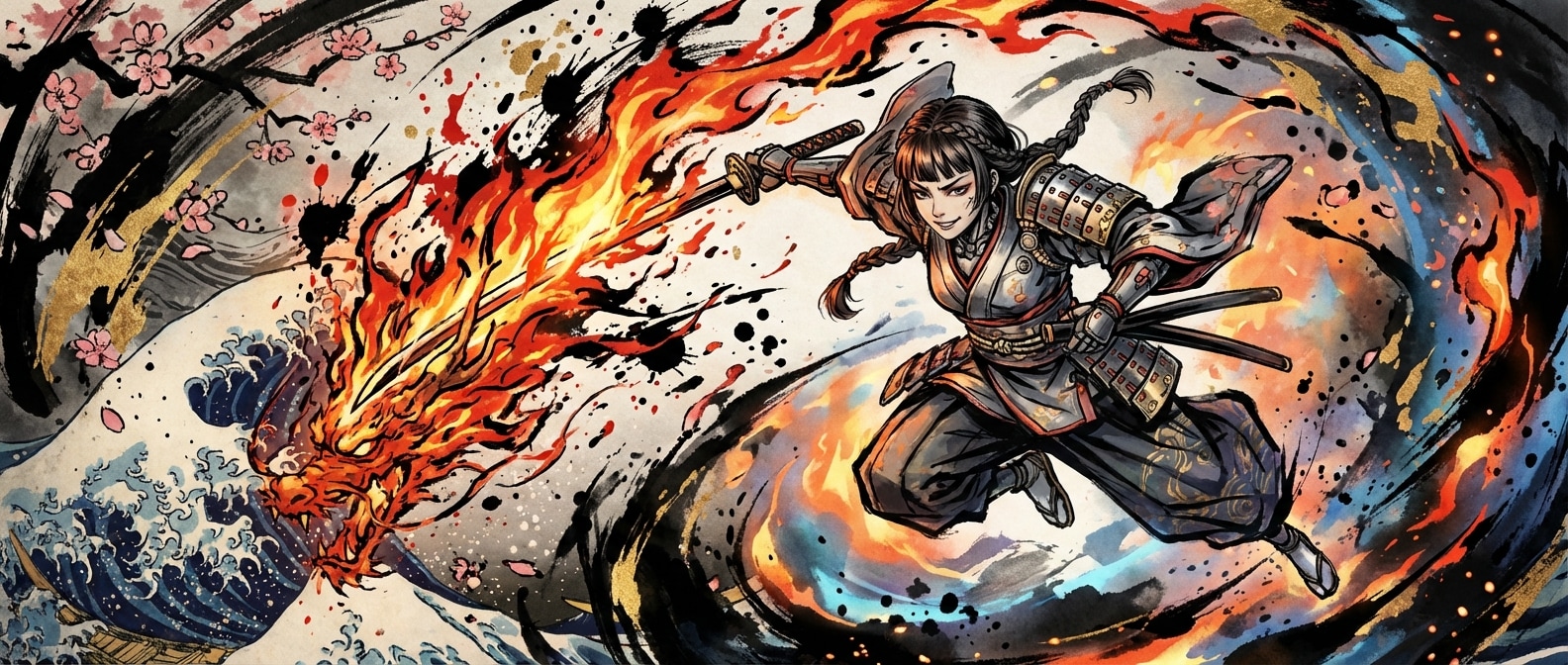 刀身に紅蓮の炎を纏い焼き切る。たまに炎が龍になって敵を襲う。