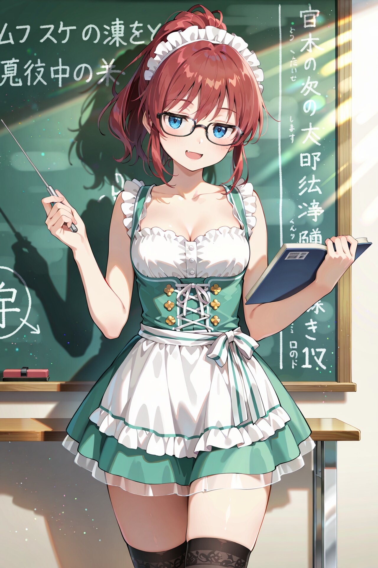 学校側の許可を得て、ディアンドルのコスプレで授業をするジト目先生です。