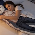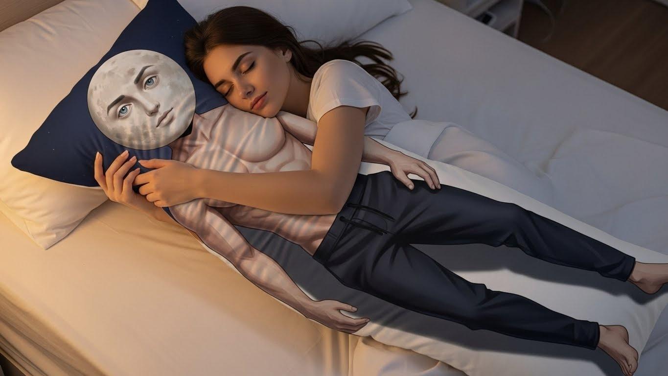 抱き枕を抱いて寝る女性