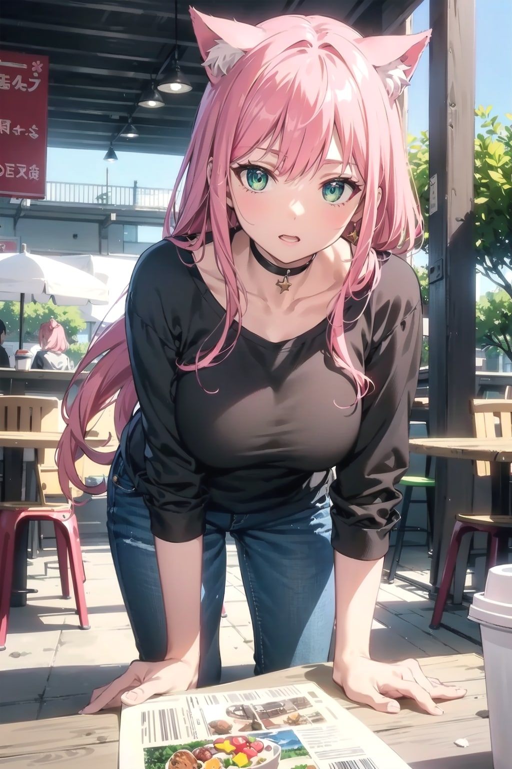 バイクでツーリング中にカフェの前でちょっと休憩するミクちゃん🐱