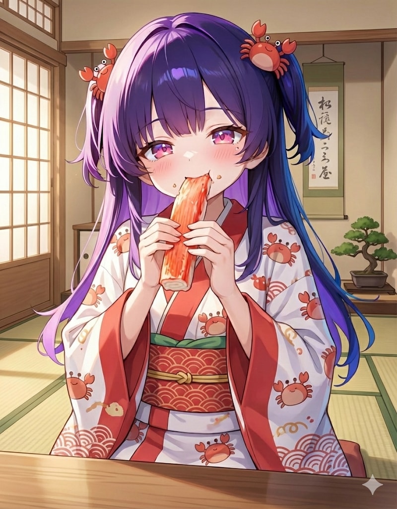 かにさんのお着物で、かにもらっちゃったー🦀