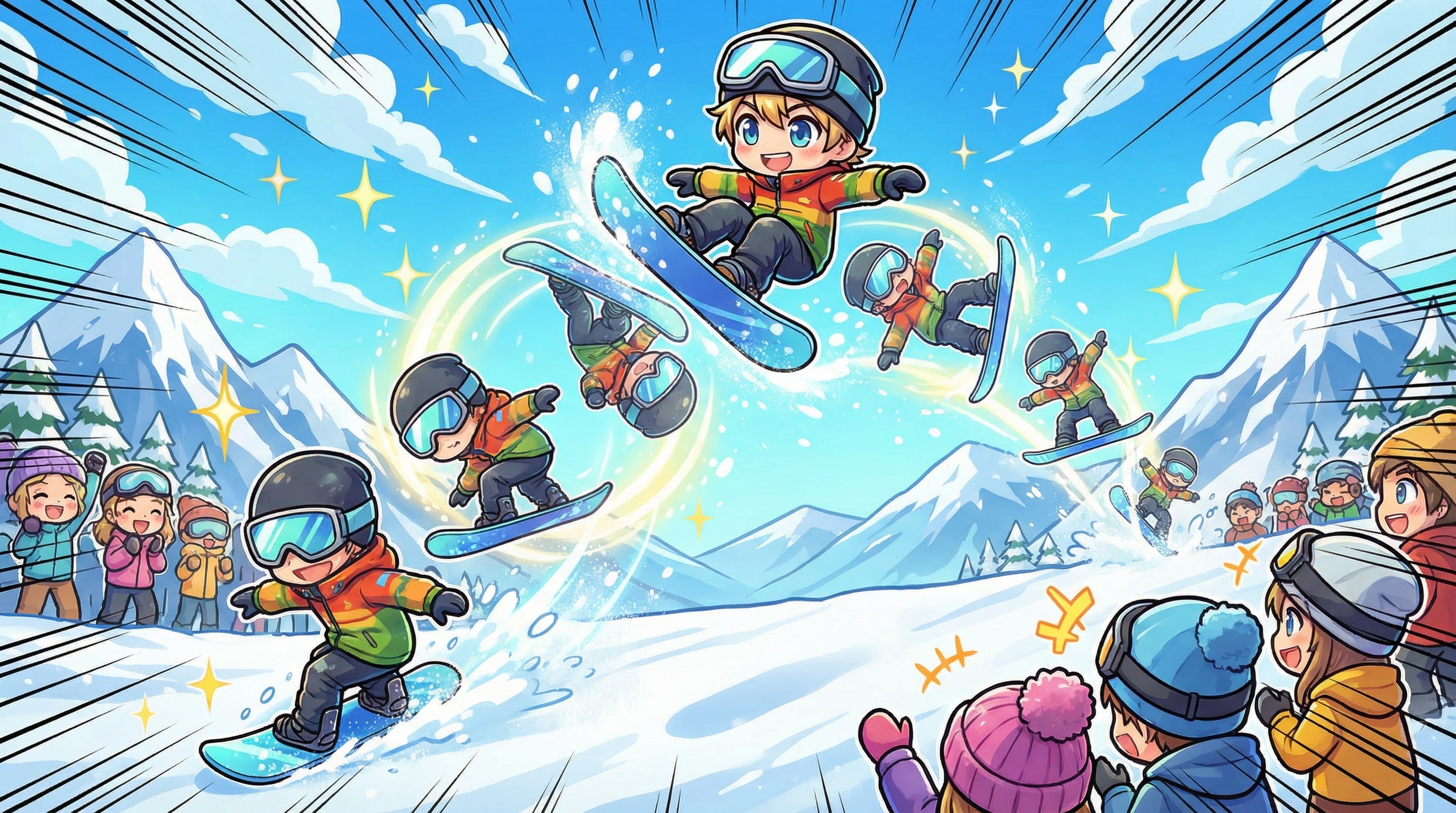 3:スノボ・ビッグエア・・空中でゴーグルを上げ、すぐに戻すという離れ技