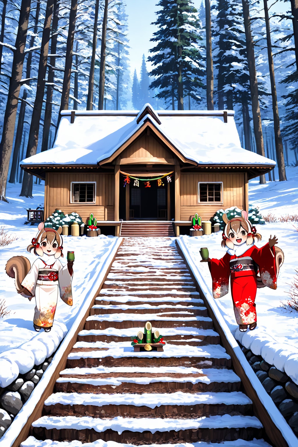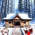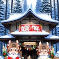 森にあるお社に初詣をして、記念写真を撮ってお家のこたつでぬくぬく。
