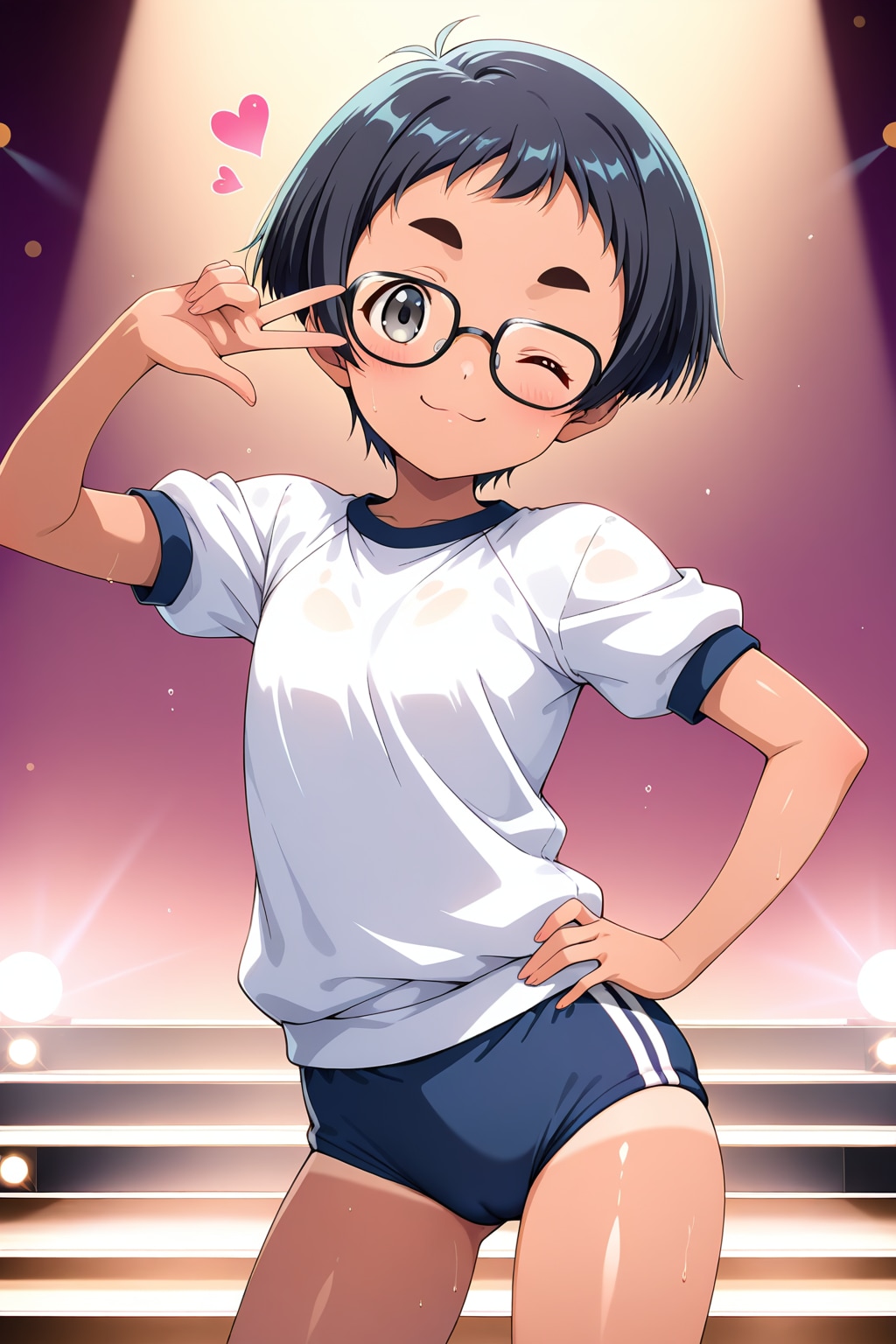 jacket partially removed, heart in eye, burnt clothes, holding fishing rod, kanji, doujin cover, pentagram, tape gag, adjusting headwear, red socks, friends, cloud print, coke-bottle glasses, oral invitation, competition school swimsuit, barbell piercing, gradient legwear, prisoner, blood on breasts, wind chime, carrying over shoulder, tape measure, flaming weapon
