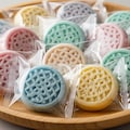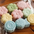パステルカラーで丸い和菓子